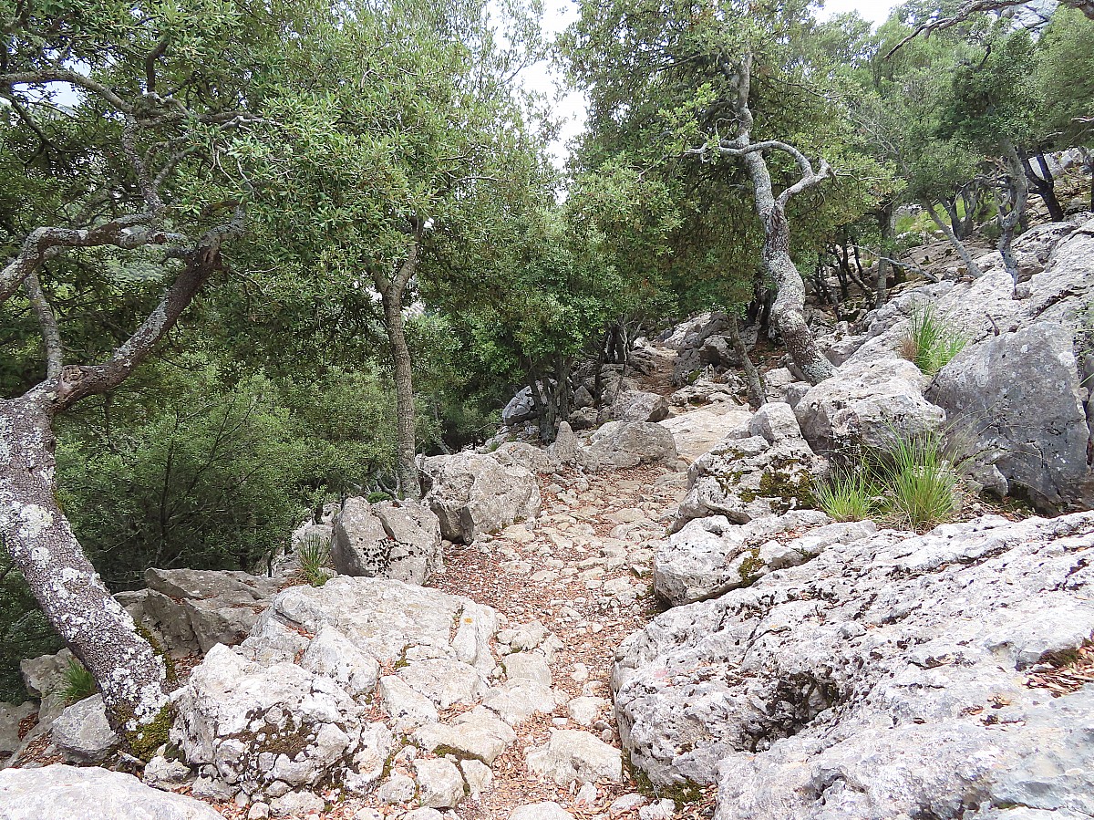 Nous retrouvons le sentier au nord est d’Esporlès et rejoignons Valldemossa par les cols Sa Basseta et Sant Jordi dans un environnement minéral et boisé.