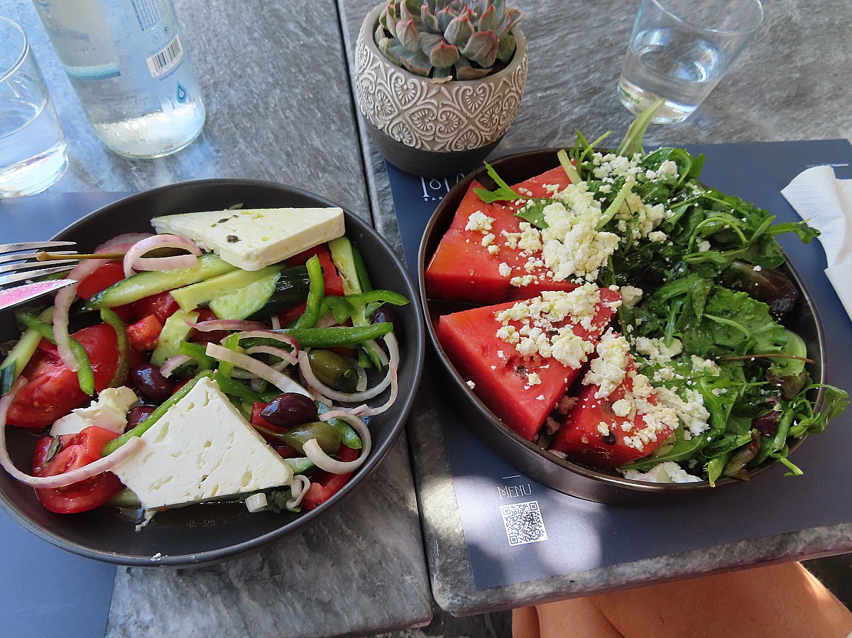 La cuisine grecque, généreuse et savoureuse, se partage. Elle est réputée proche de la nature, car elle est composée en abondance de céréales, légumes, fromage, viande ou produits de la mer avec des aromates en tout genre. L'utilisation systématique de l'huile d'olive est très appréciée pour son raffinement et sa richesse. Les petits déjeuners généralement copieux sont servis avec l'incontournable yaourt grec, feuilletés salés, gâteaux, jus de fruits pressés et petits pains au sésame. Le café frappé, une institution en Grèce, se boit glacé, surmonté d'une mousse constituée elle même de café qu'on a fait mousser avec du sucre et de l'eau.