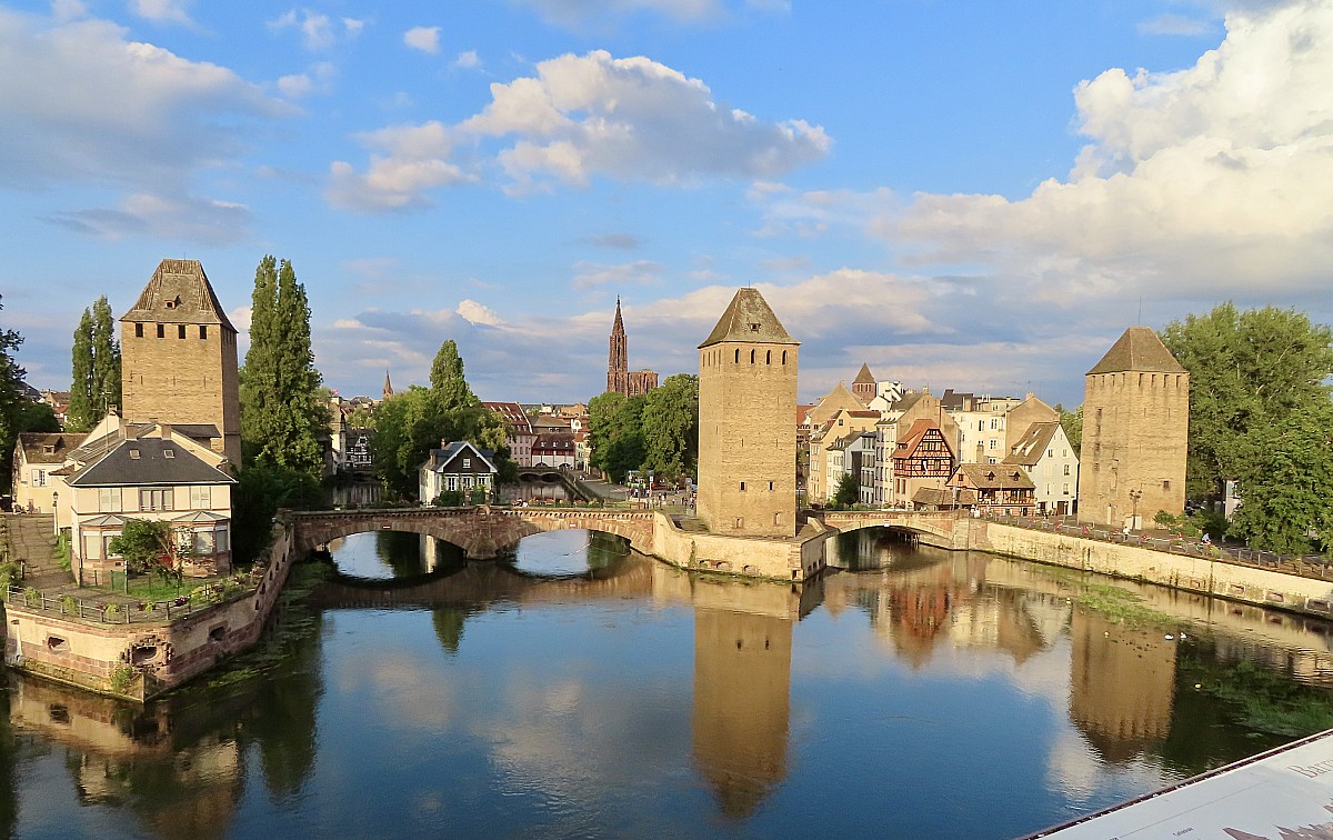 Capitale européenne, Strasbourg est connue pour son riche patrimoine historique et architectural. Nous consacrons tout l'après-midi à la visite des quartiers emblématiques de la ville : la Place Kléber où chaque année est installé le Grand Sapin du Marché de Noël, la Cathédrale Notre-Dame avec l'horloge astronomique et ses automates qui s'ébranlent tous les jours à 12h30, les canaux et maisons à colombages fleuries de la Petite France, les tours des Ponts Couverts...