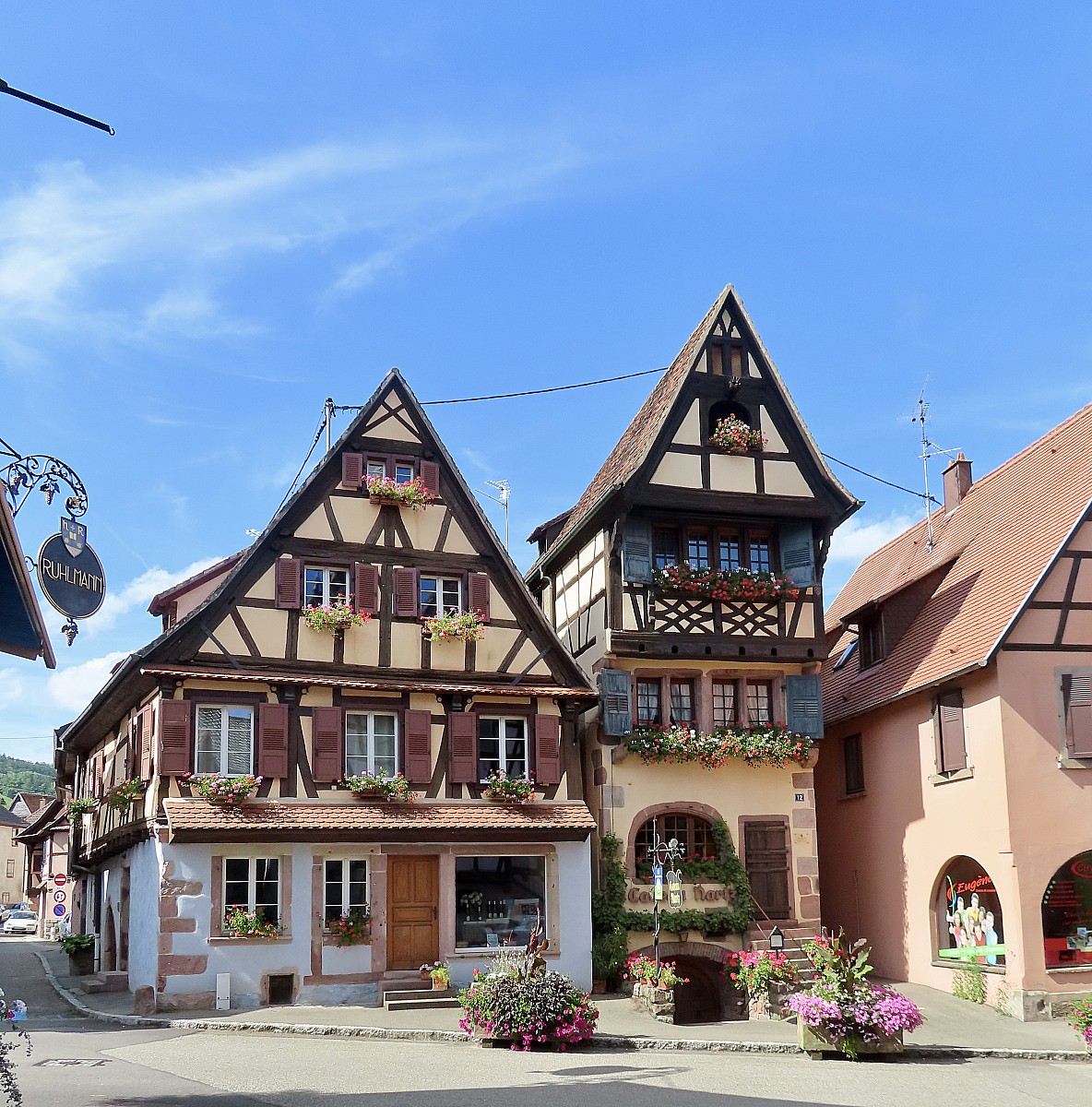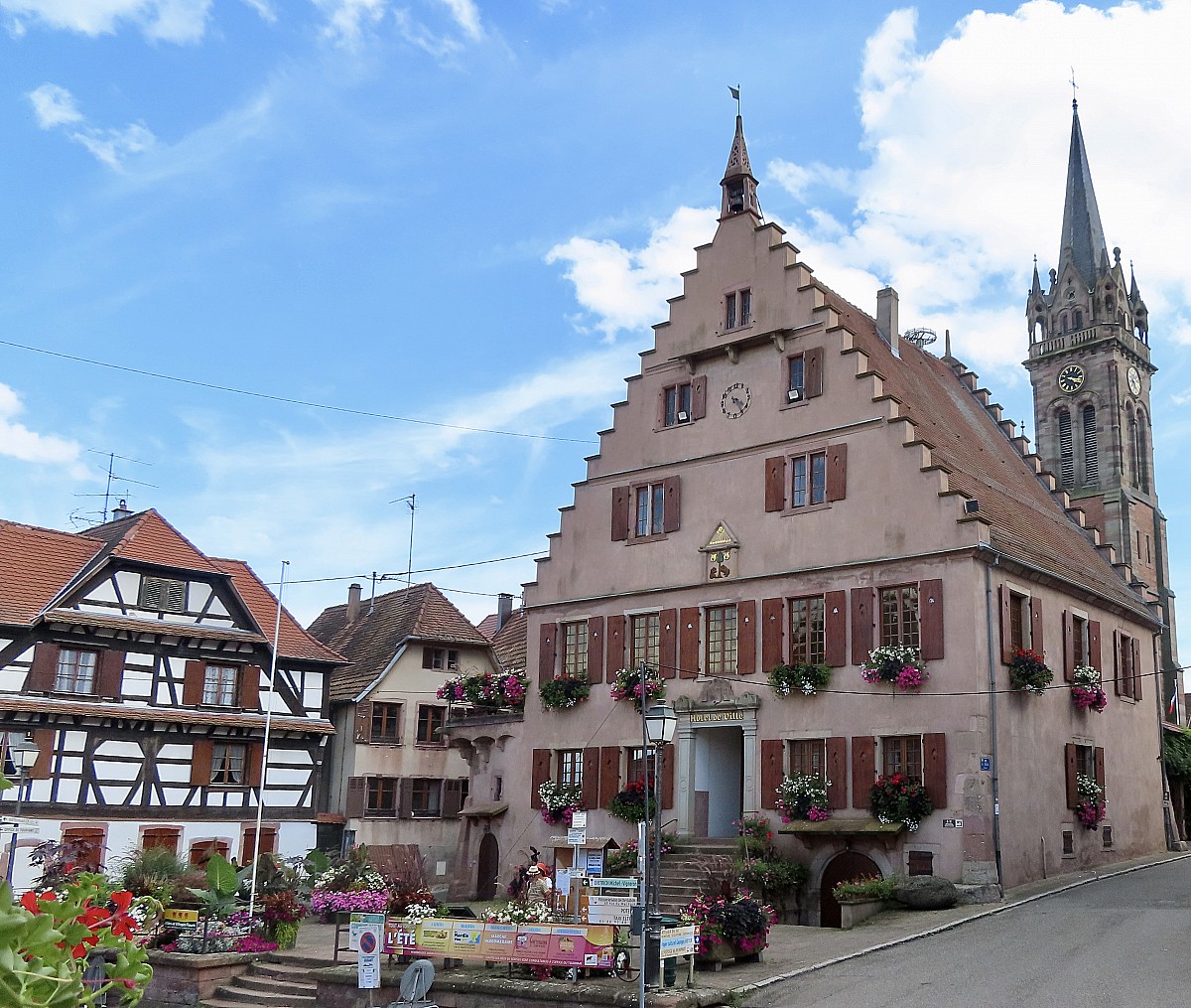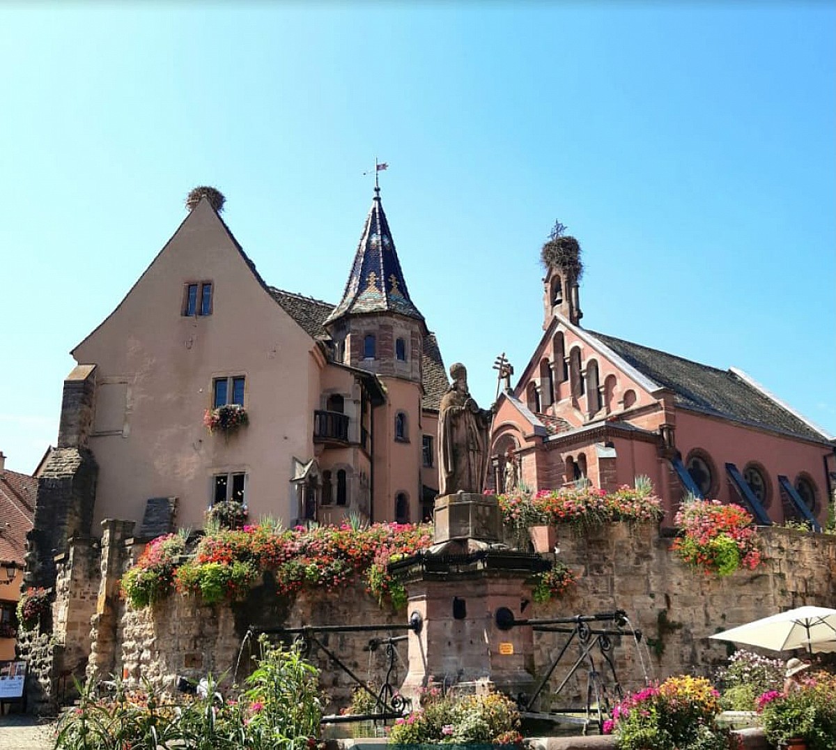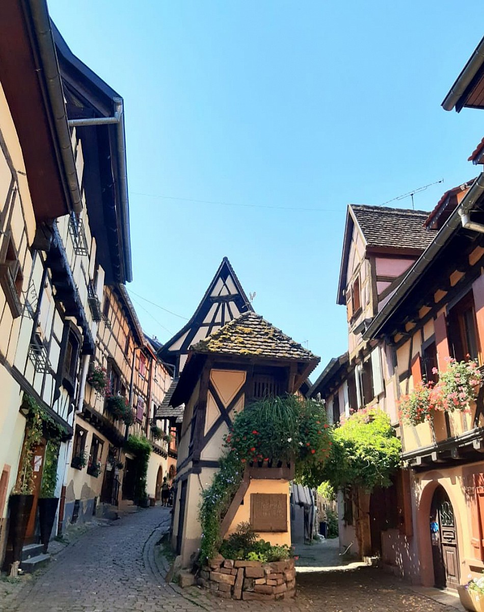 Ancienne ville impériale, Kaysersberg s'est développée au fil des siècles en nous laissant un patrimoine bâti exceptionnel. Chaque année le village attire des visiteurs du monde entier pour son marché de Noël. En fin de matinée nous partons au hameau des Trois-Epis pour randonner vers le site du Galtz, une statue impressionnante du Christ à 730 mètres d'altitude avec une vue panoramique grandiose en son sommet. Turckheim nous accueille ensuite avec sa porte fortifiée et de beaux bâtiments comme la Mairie, l'église Sainte-Anne et l'hôtel des Deux Clefs. C'est notre village coup de coeur, on sent qu'il y a une vraie vie locale et qu'elle n'est pas dédiée uniquement aux touristes. Une des particularité de Turckheim est d'avoir conservé la tradition du Veilleur de Nuit que l'on peut accompagner gratuitement tous les soirs d'été dans sa ronde nocturne !