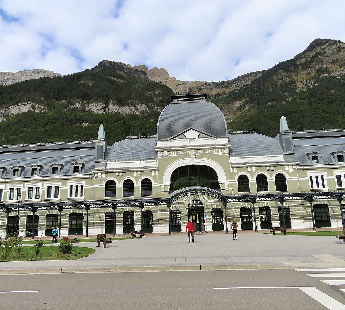 Nous quittons Pau par le col du Somport, porte d'entrée des Pyrénées vers l'Aragon. Première halte à Canfranc, où se dresse l'ancienne gare internationale inaugurée en 1928, aujourd'hui transformée en hôtel de prestige. L'été, l'Expreso de Canfranc fait revivre cette ligne mythique.