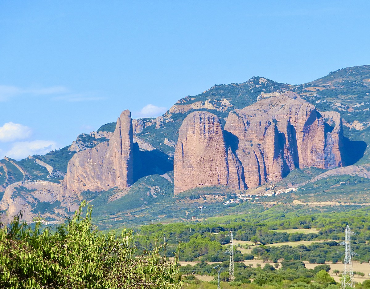 Nous arrivons au village de Riglos, dominé par les impressionants Mallos, ces monolithes de pierre ocre dont les parois dépassent 300 mètres. A l'entrée du bourg, l'ermitage San Martin et, au pied des falaises, l'église Senora del Mallo.