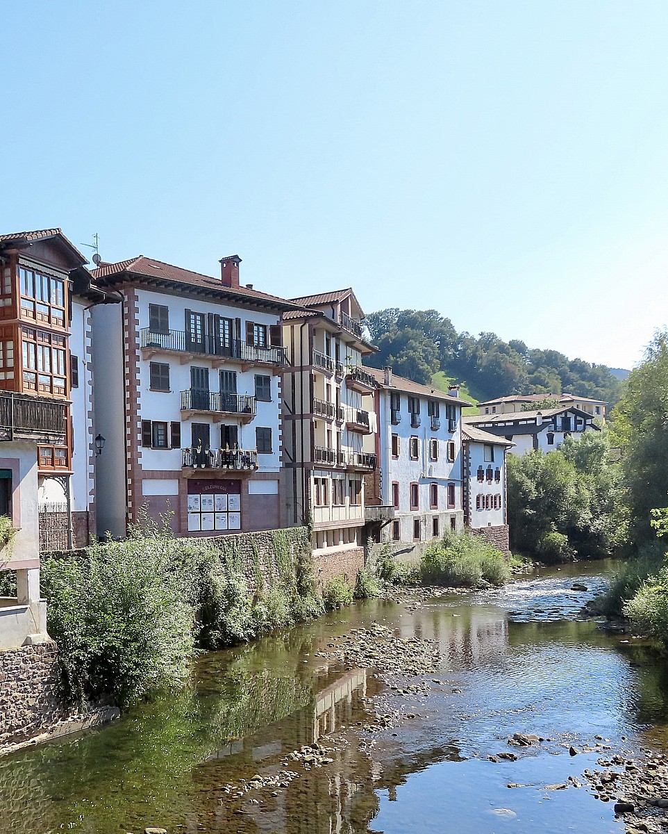 Pour cette dernière étape, nous traversons la vallée de Baztan, au nord de Pampelune. Cette vallée verdoyante nous a séduits par ses villages aux grandes maisons de pierre et églises imposantes, héritage des fortunes ramenées des Amériques par les émigrés basques.