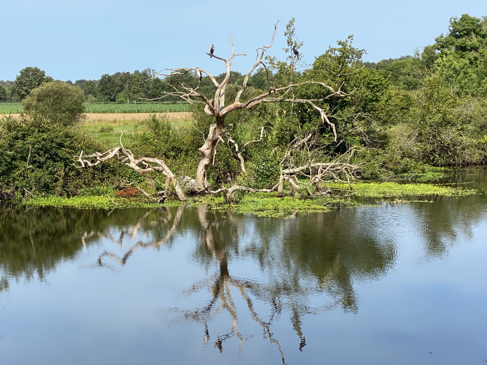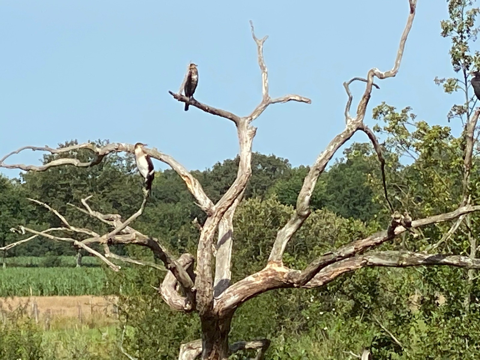 Présence de jeunes cormorans ( ventre blanc - photo no 8 ) sur un arbre mort.