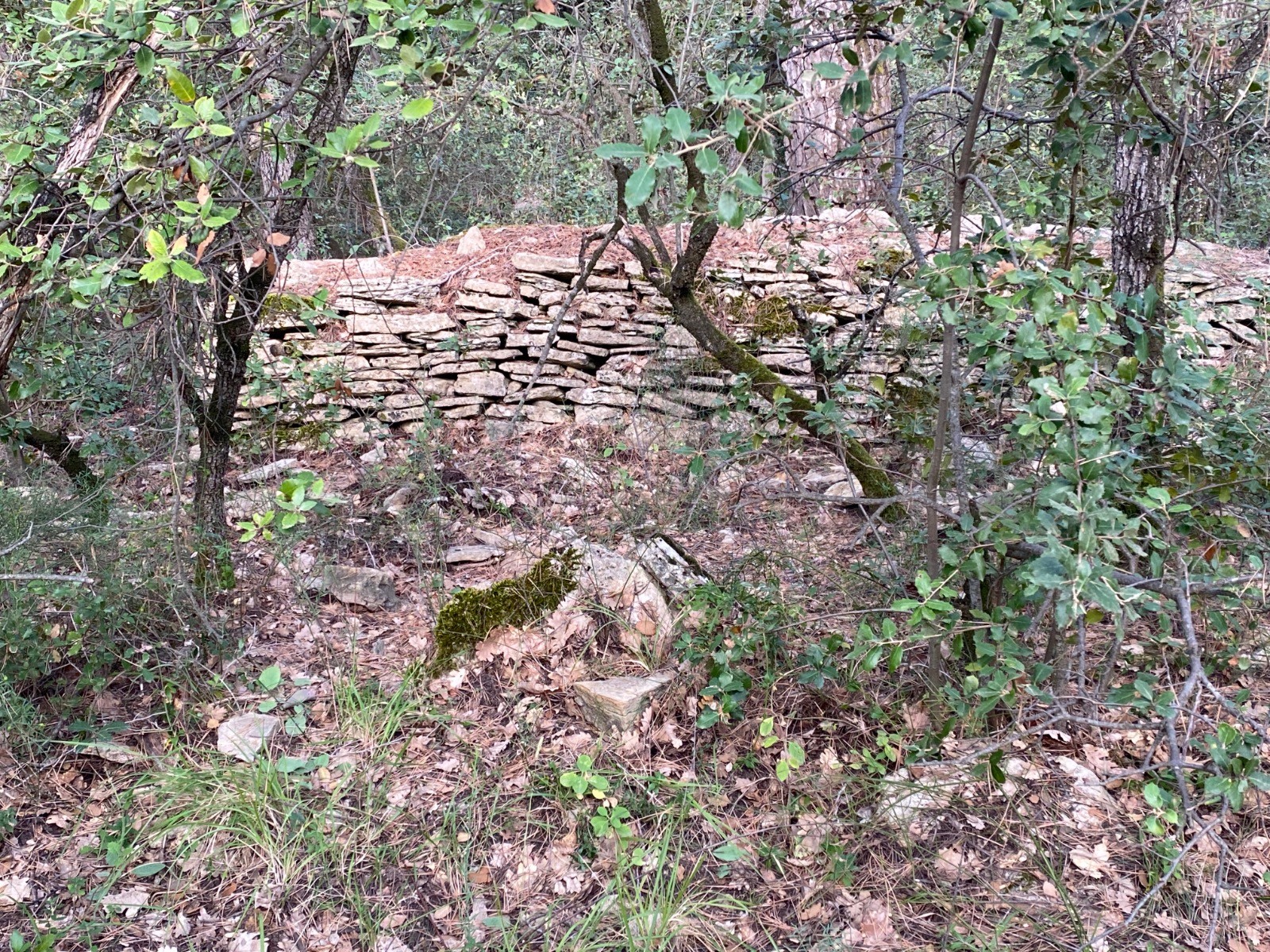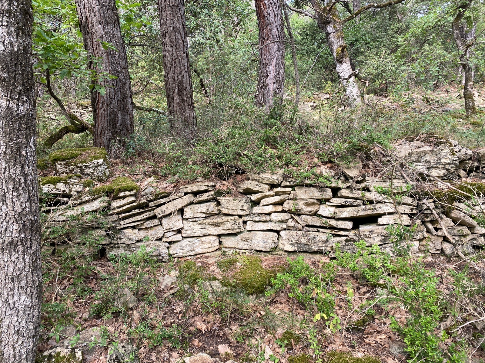 Chemin très agréable où l'on trouve de temps en temps des murets et banquettes de pierres comme le montrent les photos no 3 & 4.