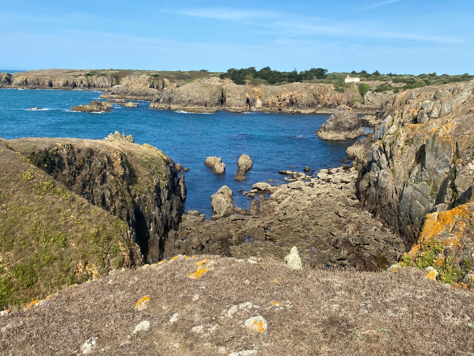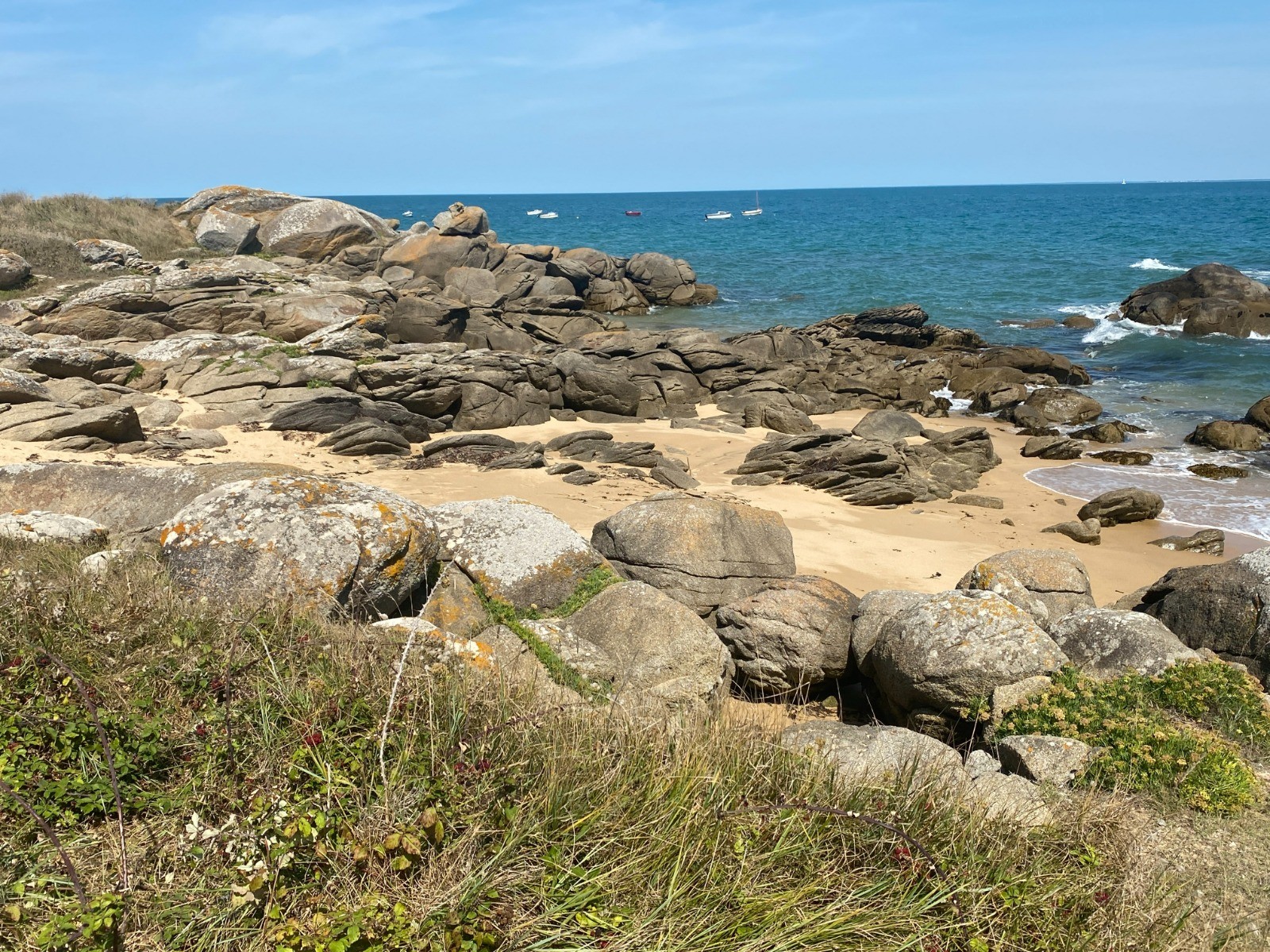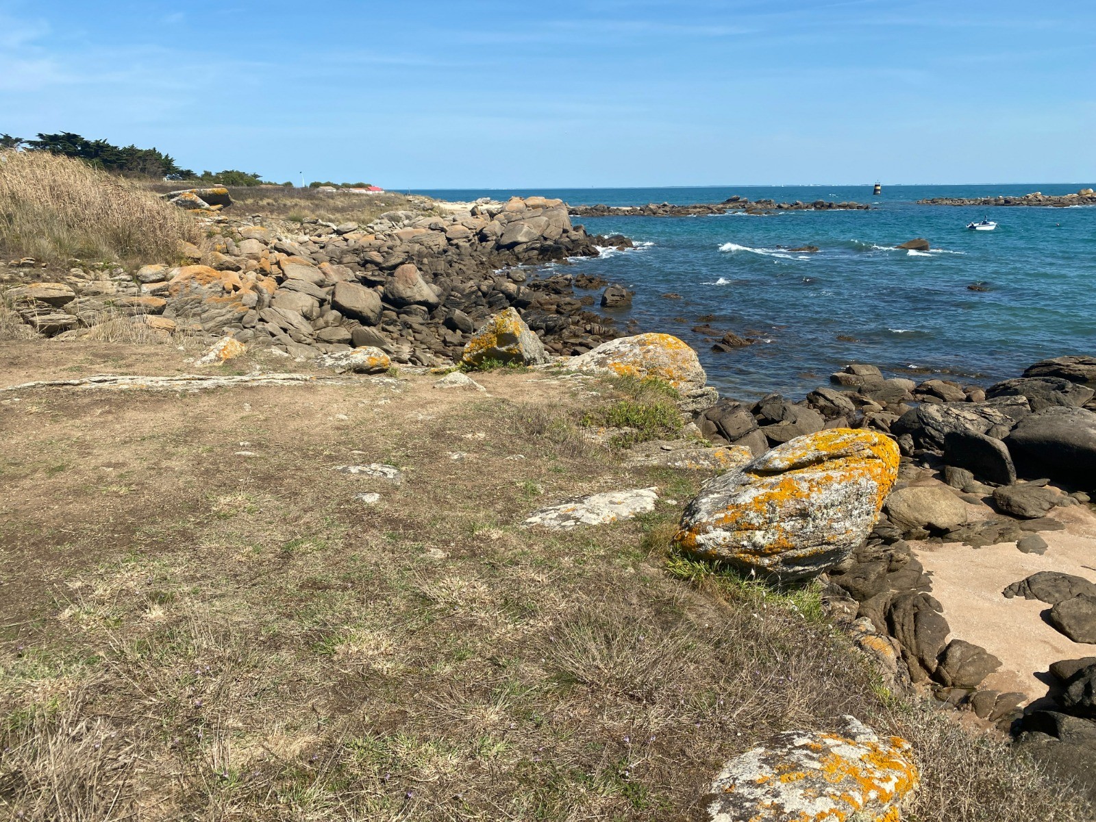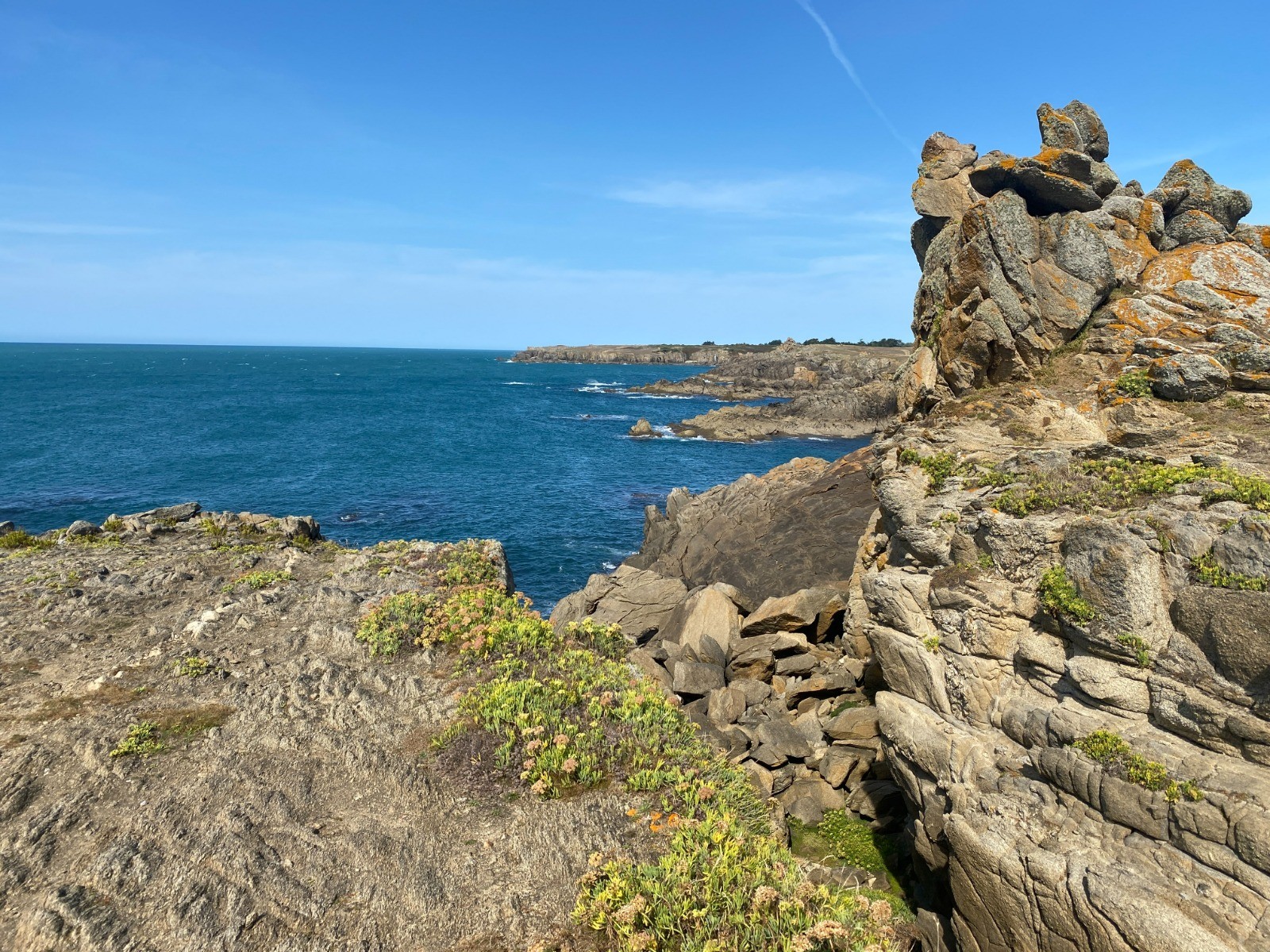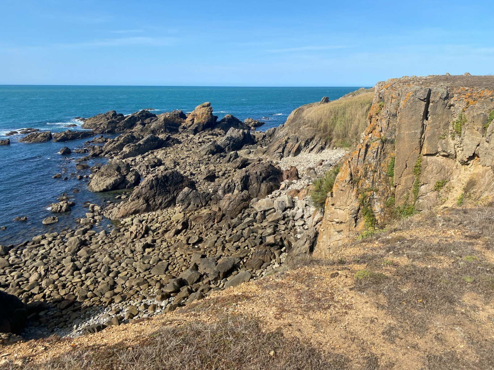 Côtes rocheuses : Moins abruptes que sur la côte sauvage à l’ouest, mais ponctuées de petites criques et d’affleurements granitiques.