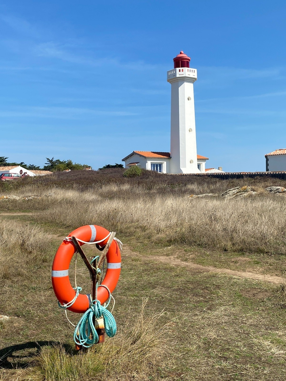 KIlomètre 13 : La pointe des Corbeaux ( extrême sud-est ) : marquée par son phare, elle offre de superbes vues sur la mer et parfois jusqu’aux côtes vendéennes.