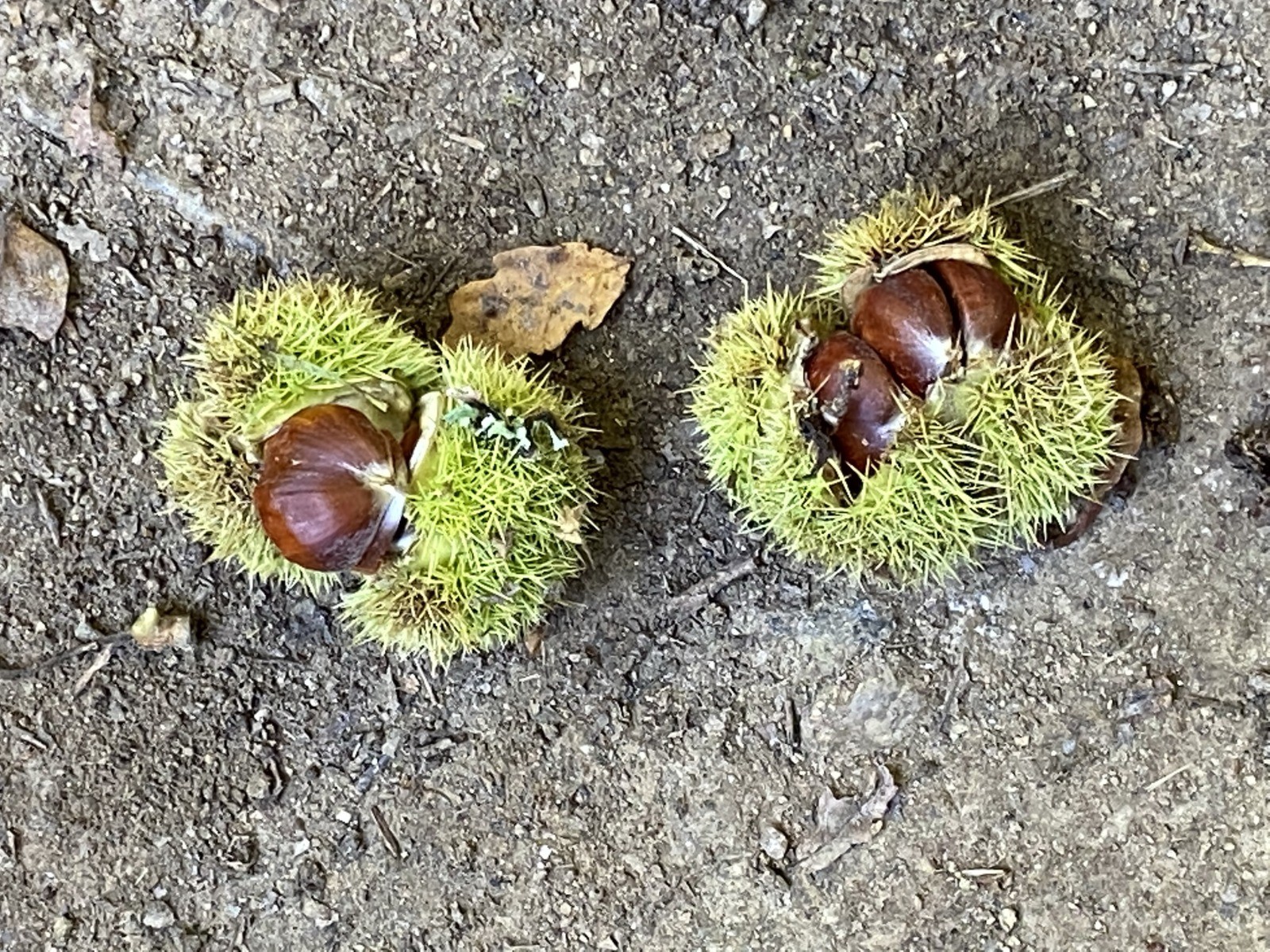 Rapidement nous voilà dans un chemin tapissé de feuilles de châtaigniers et bien évidemment de bogues nous livrant de beaux fruits.