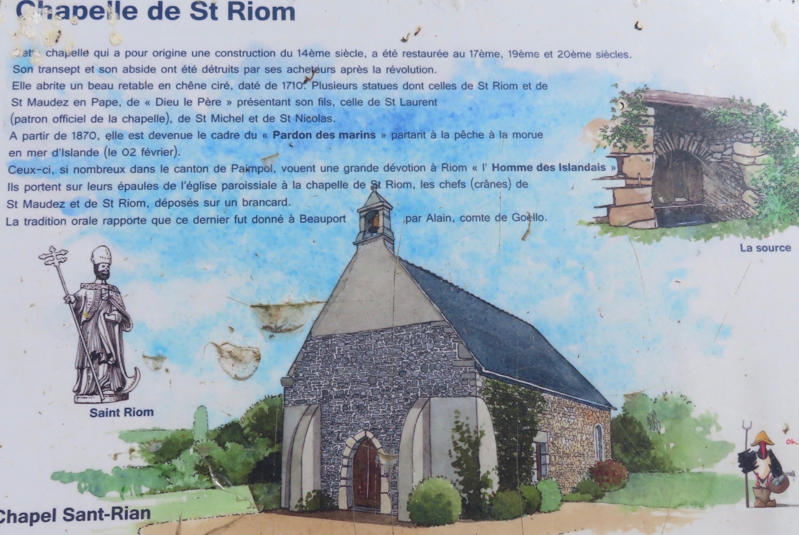 Les falaises dePlouézec dans les Côtes d'Armor comptent parmi les plus hautes de Bretagne avec celles de Plouha. Sur près de 10 kilomètres se découvre un défilé de côtes sauvages où les caps rocheux alternent avec criques, plages et mouillages. Ce topo décrit un parcours entre terre et mer à partir de la Chapelle Saint-Riom datant du 14e siècle et devenue en 1870 le cadre du pardon des marins partant à la pêche à la morue en mer d'Islande.
