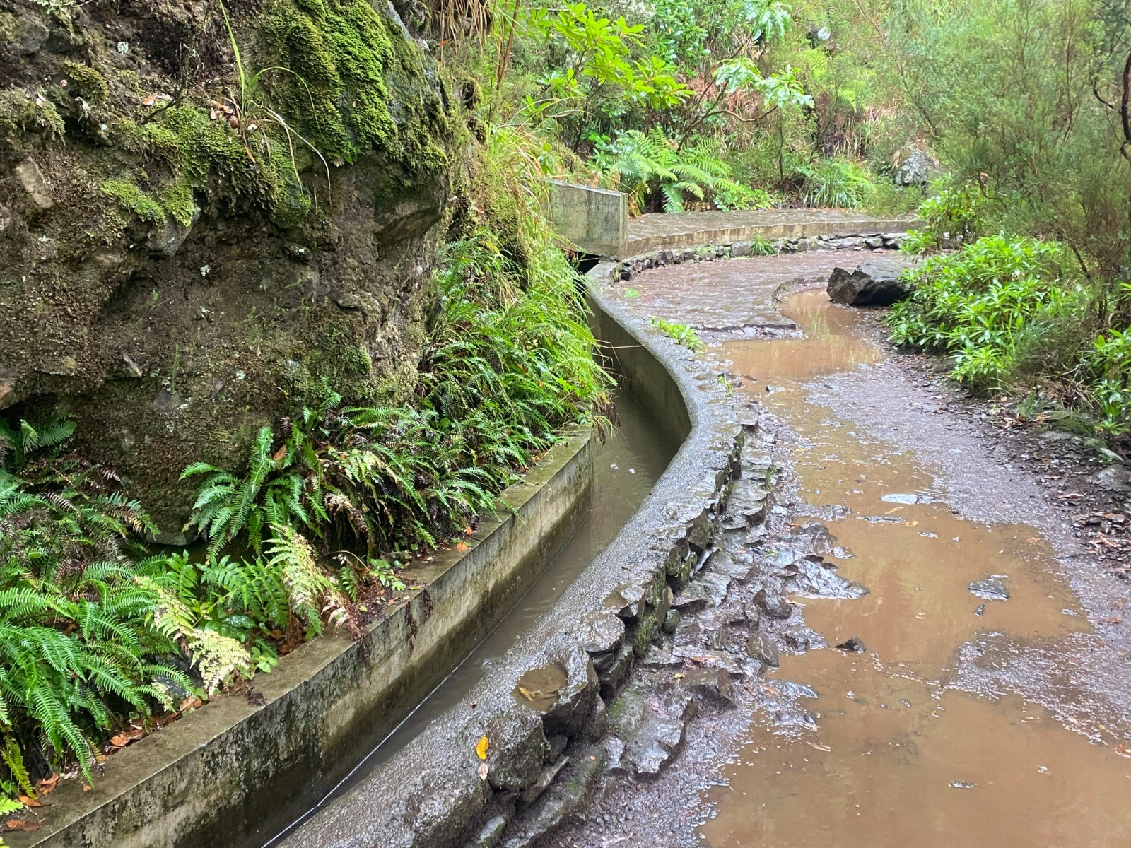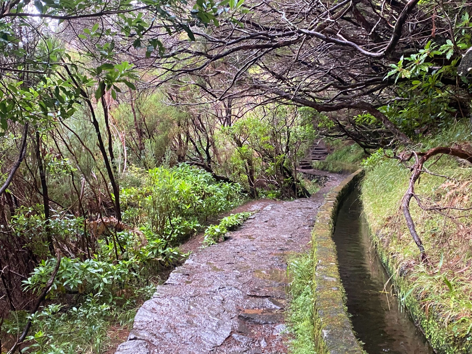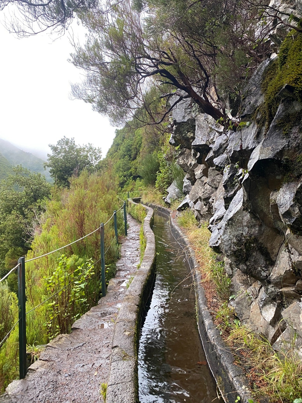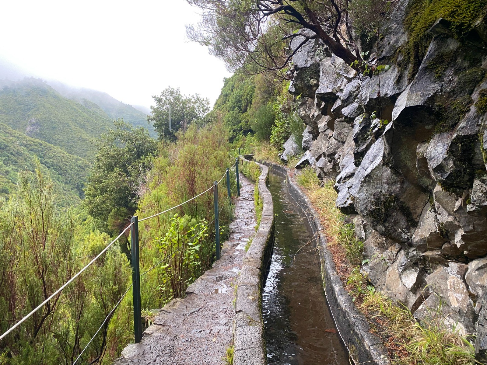 Le départ de l'excursion descend dans la vallée jusqu'à arriver le long de la Levada do Risco.