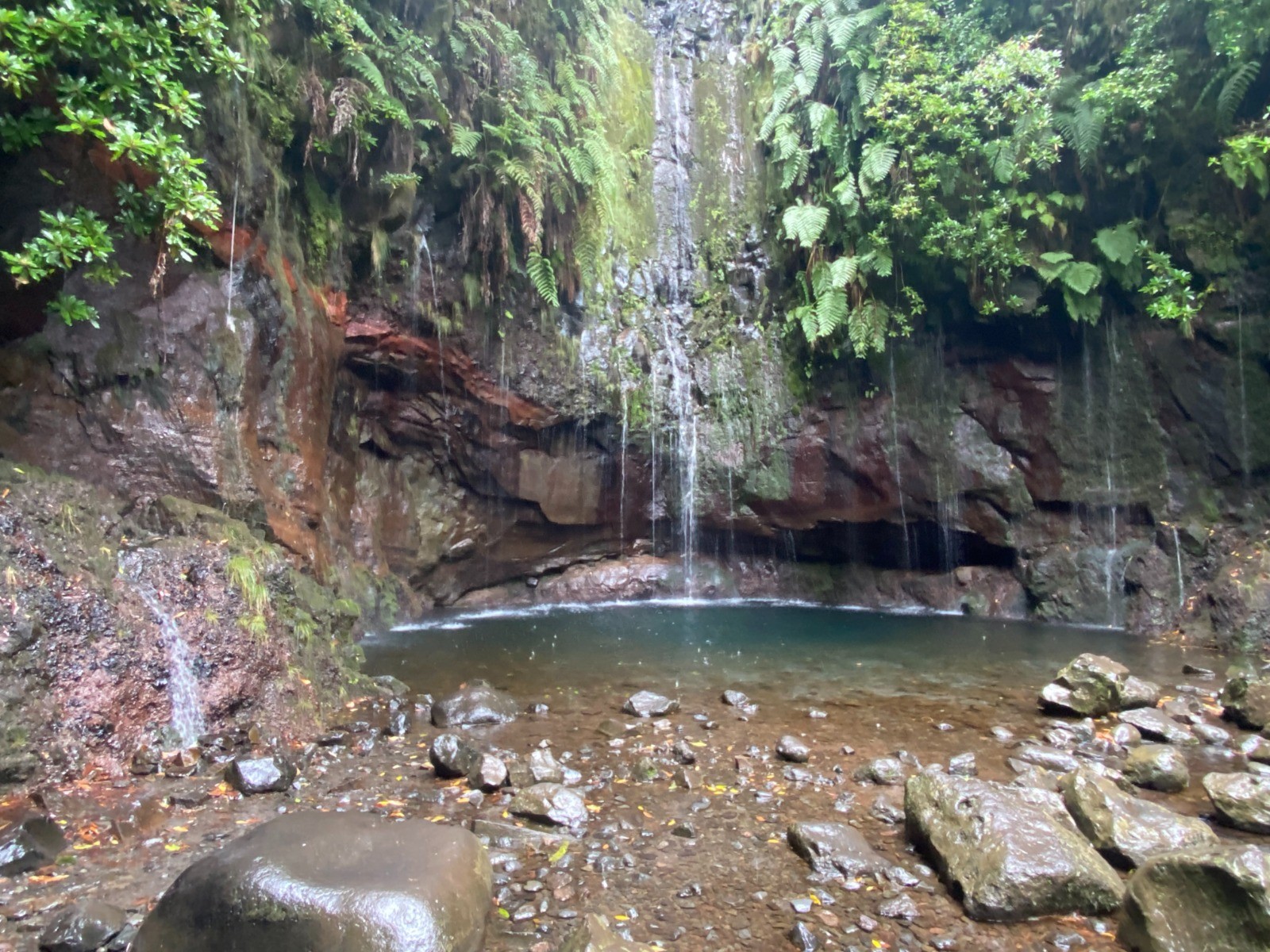 On va ensuite jusqu'au site des 25 fontes : de nombreuses petites sources d'eau alimentent la levada du même nom et jaillissent de la paroi rocheuse pour remplir un bassin aux eaux transparentes !