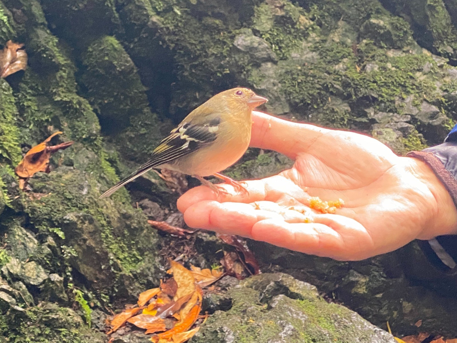 Ici le pinson des arbres est très présent et n'hésite pas à venir manger dans la main. ( photo no 15 )