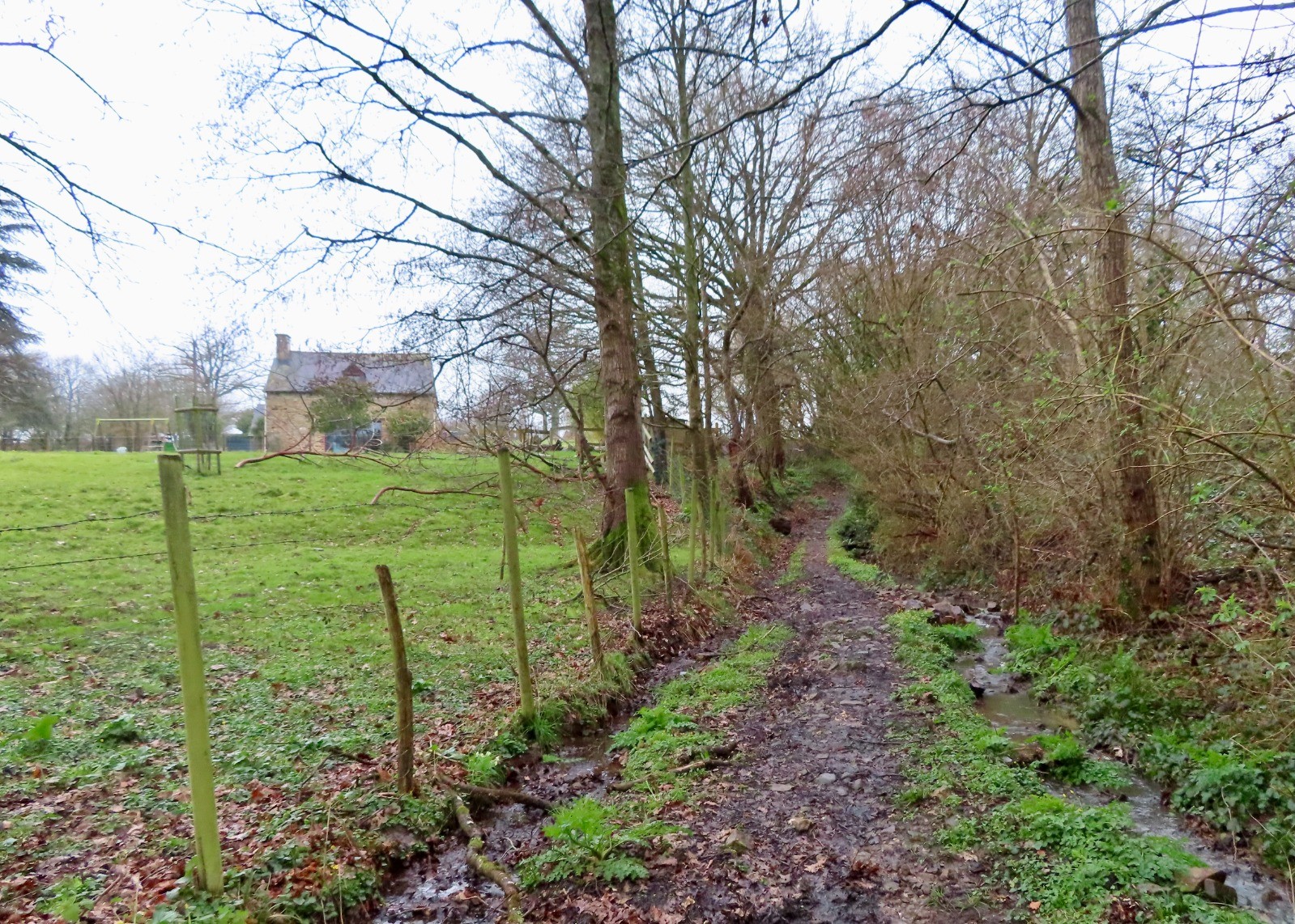 Du parking, se diriger vers les quartiers de Bellevue et du Rocher à proximité de l'A84, puis sur la D26. Tourner à droite sur une petite route en direction de la forêt de Liffré. Suivre l'allée forestière du Domaine puis le GR37 jusqu'à la D812, la traverser et suivre le GR jusqu'au KM6. Prendre le sentier nord vers le ruisseau de l'Illet et le hameau du Haut Vaurion. S'engager dans le chemin creux montant vers Gosné. Tourner à gauche sur la D26 et suivre le circuit du Meneur de loups jusqu'à l'étang d'Ouée. Continuer vers les hameaux de Cossibé, la Havardière et la Porte dans la vallée de l'Illet. Fin de parcours par la Mottais Pot et le stade.Les circuits de Gosné : www.visugpx.com/DituU5aayT
