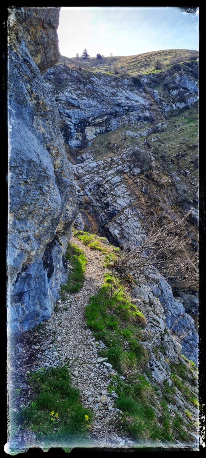 Le début de la montée est tranquille, dans le village, le long de la rivière, puis je débouche à la sortie du bois, sur un grand prés de fauche, dans le village de Doucy Dessous. Longer la route, et au Magnoux, obliquer à gauche sur une petite route qui monte raide en direction EST. Ça commence raide, et ça fini très raide. J'ai pris le sentier de droite, vraisemblablement celui de gauche aurait été légèrement plus cool. Ca redeviens moins raide à l'arrivée dans une sapinière. Durant la montée, je sens de l'air froid me dégouliner dessus depuis le sommet ... le catabatique ? J'espère que cela ne va pas durer... La balade est superbe, quelques passages raides et escarpés, rien d'engagé. Après la cascade, je débouche sur les prairies à Chamois, sous la dent de Pleuven. J'oblique à gauche, et je rejoins la croupe.
