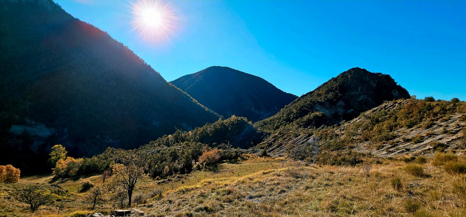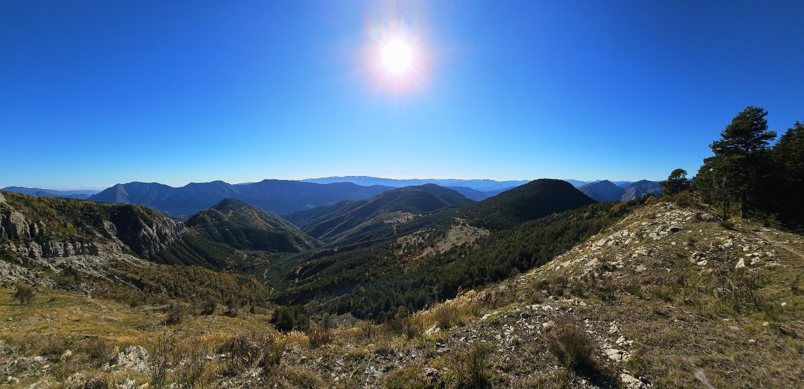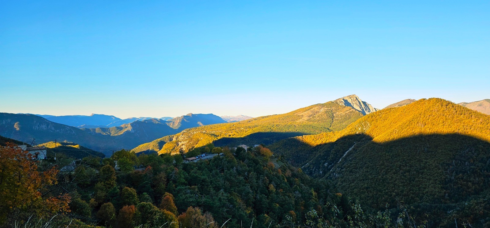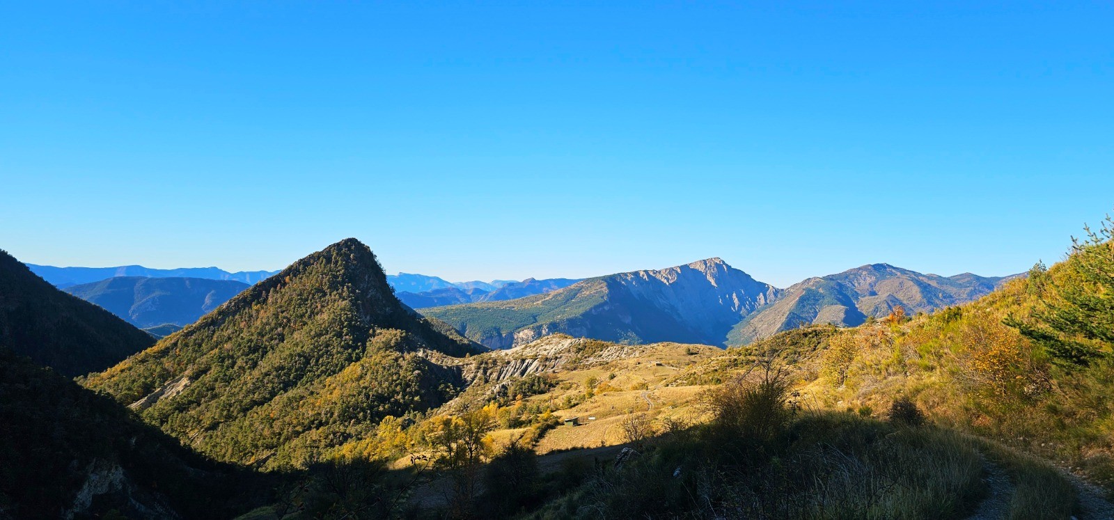 Conclusion : rando conçue pour découvrir un village de caractère généralement méconnu en raison de son isolement, en y associant un parcours d'envergure de moyenne montagne dans un cadre automnal ponctué de sites remarquables avec de beaux points de vue permettant de diversifier cette sortie qui ne présente aucune difficulté technique. Vastes étendues pour un itinéraire sauvage et contrasté ! NB : possibilité de s'approvisionner en eau aux ruisseaux de la B 94 et au km 4,72 + fontaines de Villa Souberre et du col de la Madone. Mentionnons par ailleurs que la longue route desservant le village de Thiéry est parfaitement carrossable.
