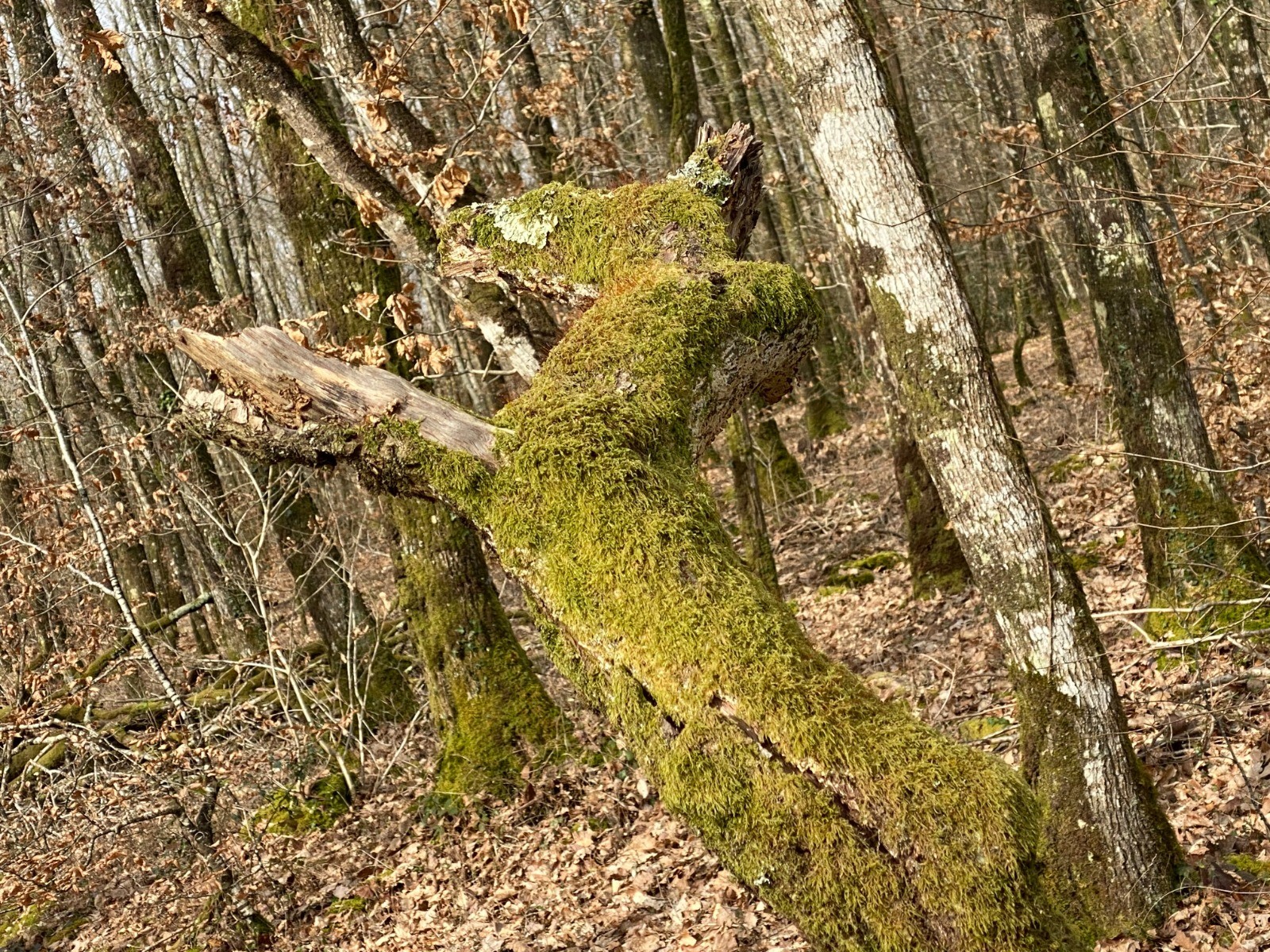 A défaut de prendre des arbres en photos... ce qui devient un peu banal après deux heures de marche recherchez des formes particulières parmi les branches, les arbres morts...et pourquoi ne pas y voir un oiseau, un félin !