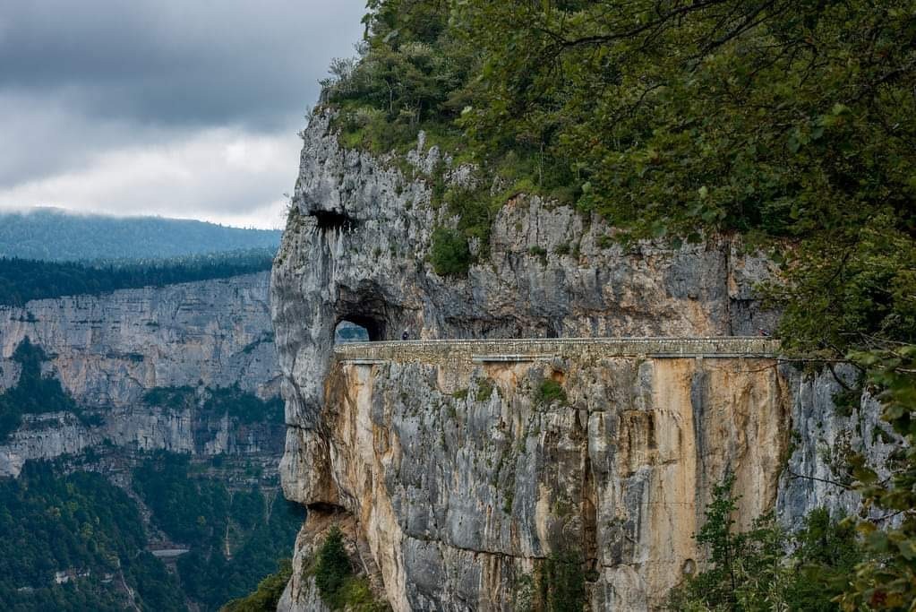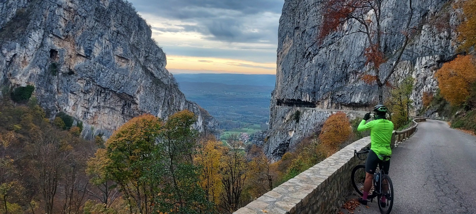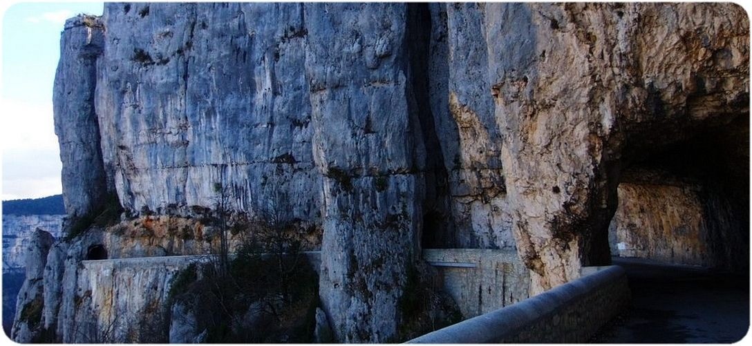 Passé c'est deux cols, une longue descente nous attend, ponctuée seulement d'une bosse à la sortie de St Martin en Vercors, petite ville avec commerce et bar restaurant. La bosse terminée, on continu notre descente jusqu'à la Balme de Rencurel début de notre deuxième route myhtique la gorge de la Bourne, une départementale toujours en descente coincée en bas de deux falaises vertigineuses. Malgré la vitesse rapide de la descente, ne pas oublier de contempler la cascade du moulin marquis sur la gauche à mi chemin de l'arrivée.
