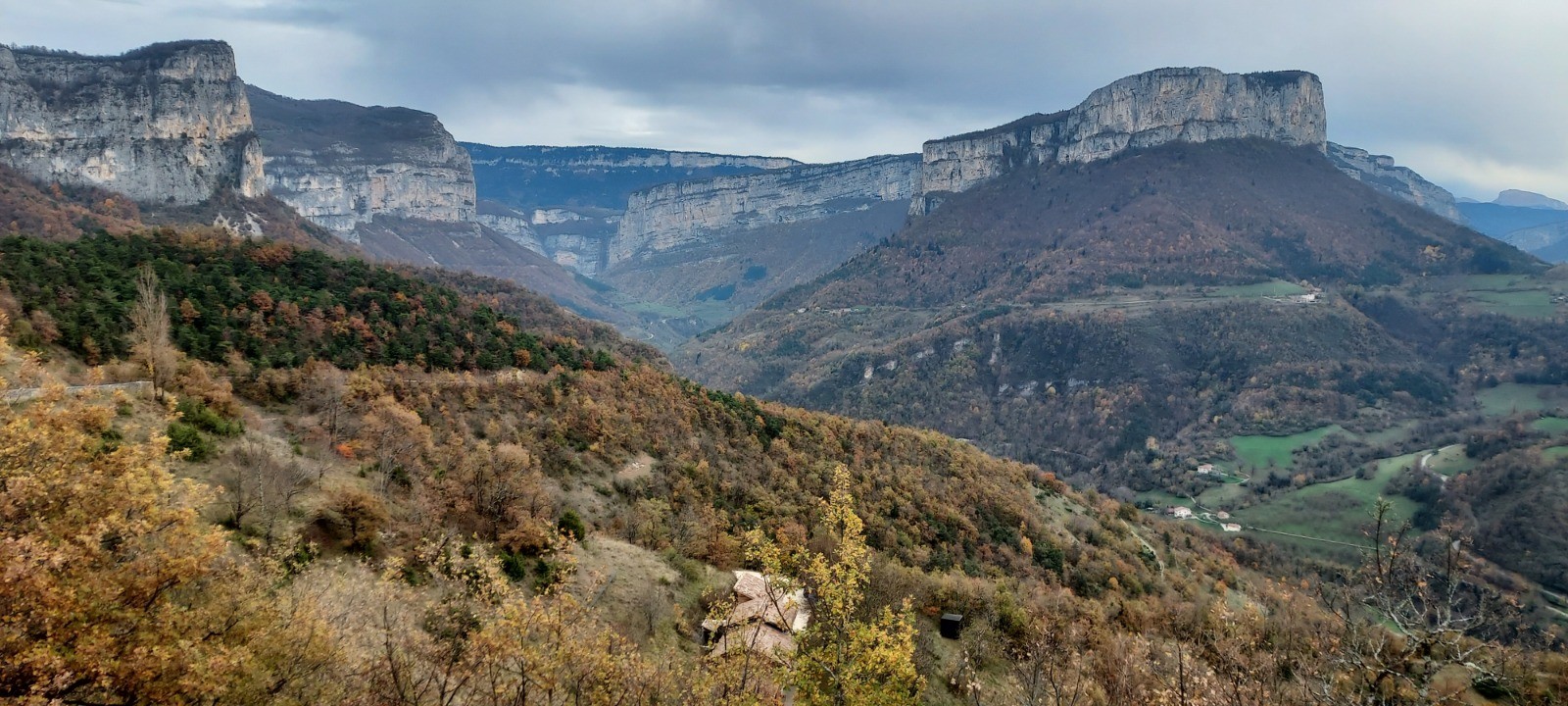 En haut du pas du pré Coquet, une longue descente nous attend pour quitter le Vercors par la quatrième et dernière route mythique la gorge du Nan. Passage impressionnant ou une fissure peu large coupe la montagne en deux.