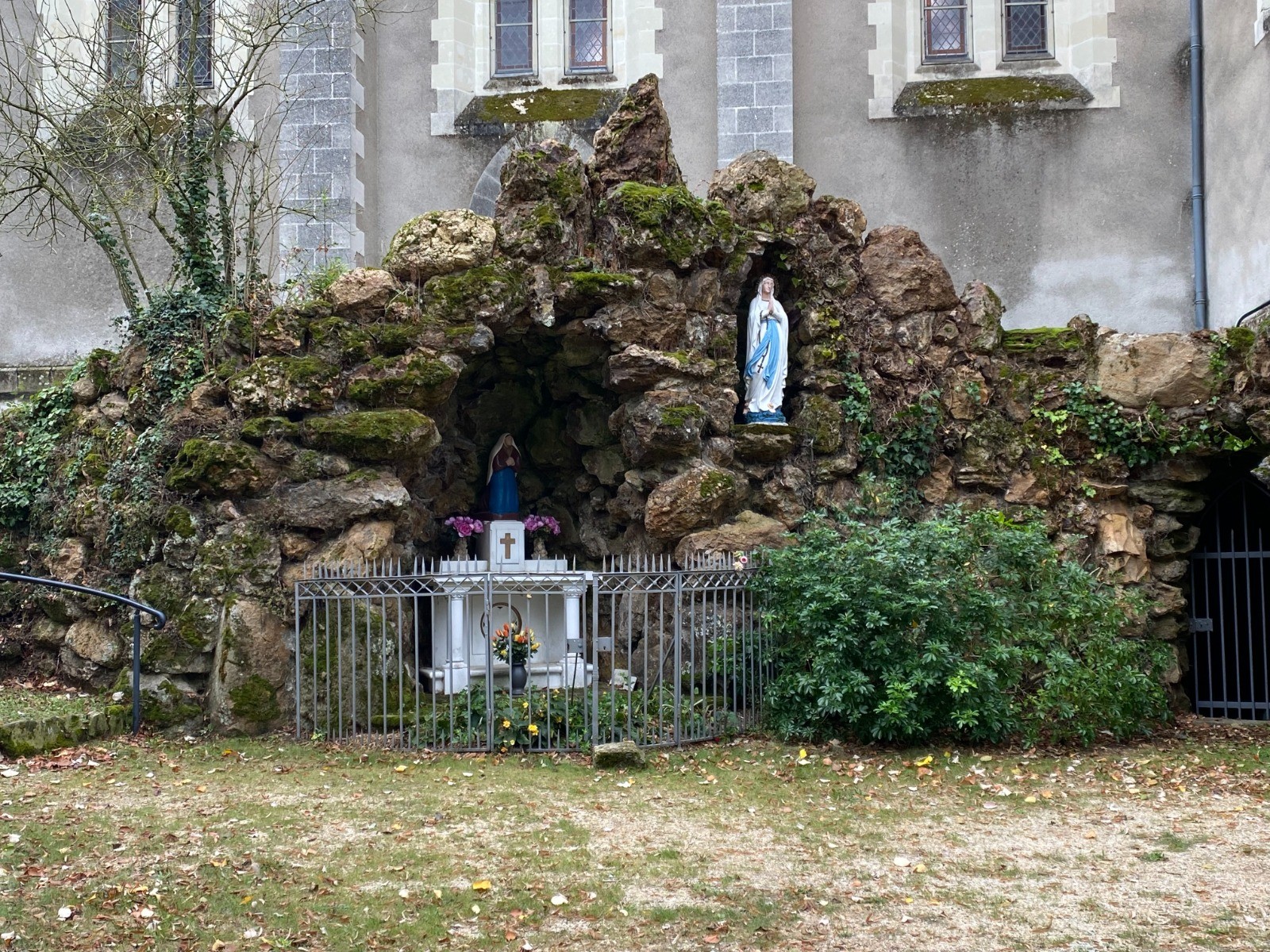 Puis nous longeons l’église Saint Vial au pied de laquelle se trouve une grotte ( photo no 16 ) nommée grotte Saint Vital ou grotte de Lourdes.