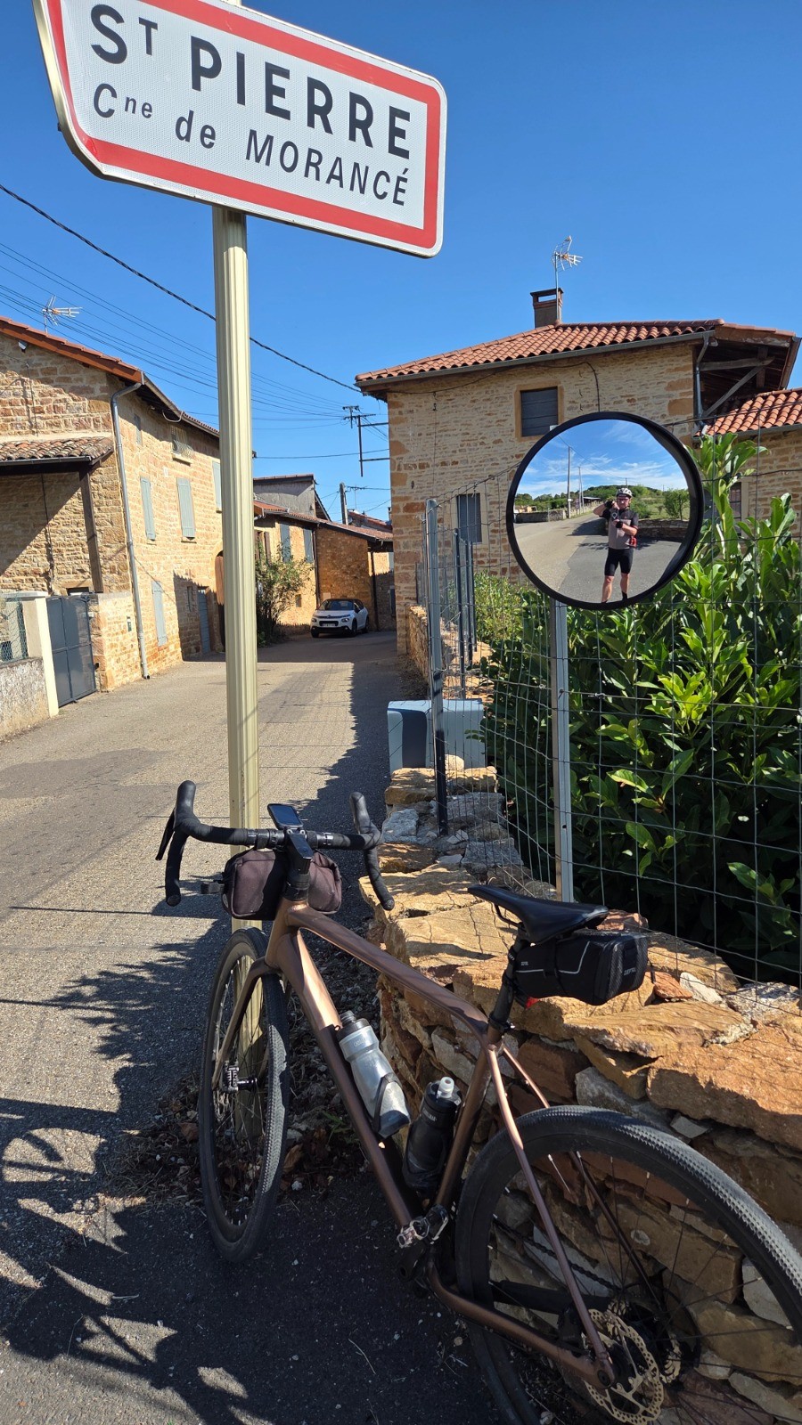 Hésitation à Liergues, un panneau indique Villefranche 5Km par une voie verte refaite à neuf, rentrer en suivant la Saône ?? je reste sur mon idée, la remontée à Charnay via les bois d'Alix vaut des points , le restau-Bar est ouvert, nickel .... descente par de petites routes à Lozanne via Belmont .... Encore des watts nécéssaires pour remonter à lentilly, j'opte pour une version plus soft que l'habituelle (pas envie de me griffer les bras) ..... Un dernier cheminement VTT smooth pour aller rouler en dessous de l'école Véto et finir par Lacroix-Laval ..... ça fait envie non ?