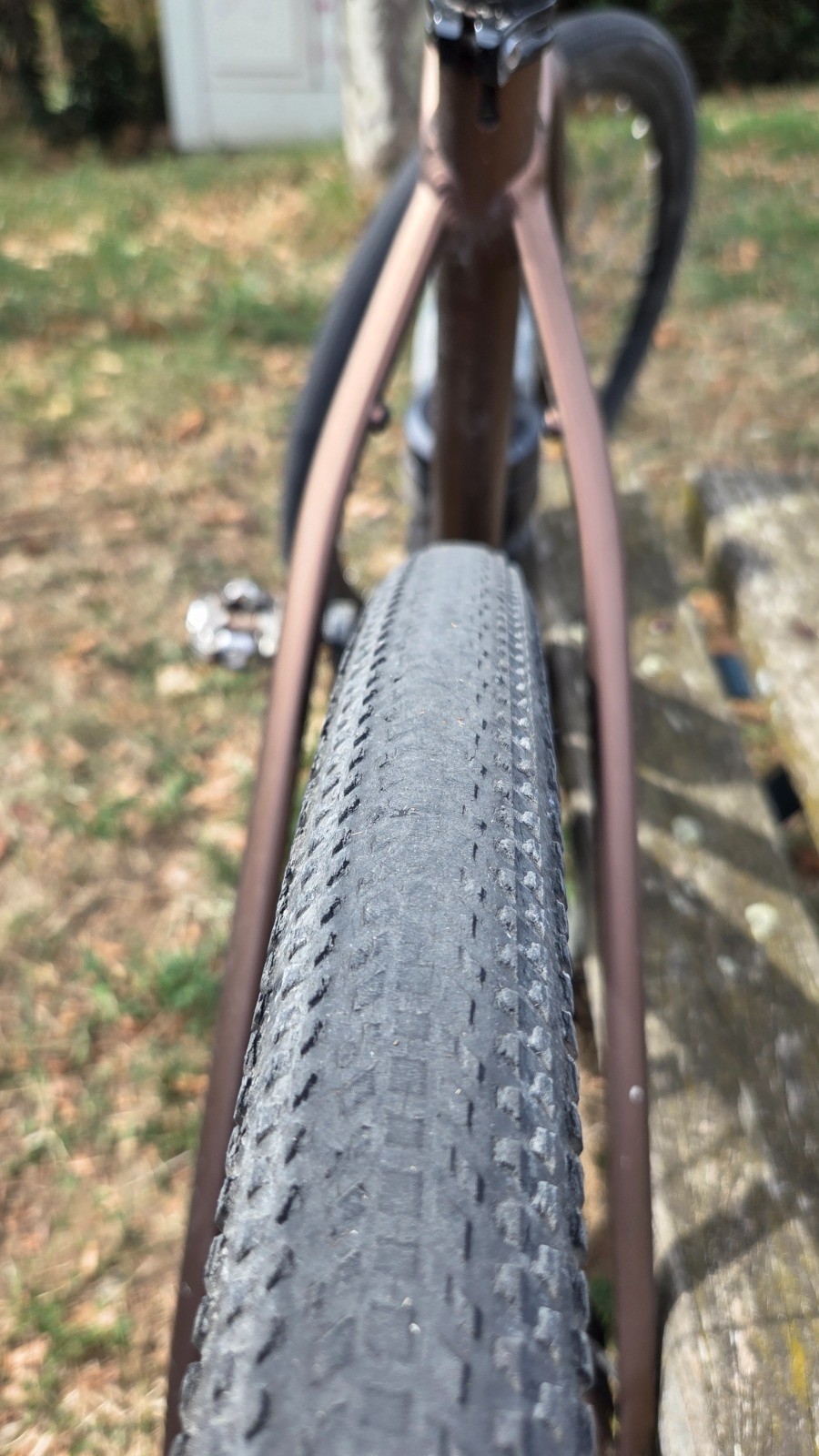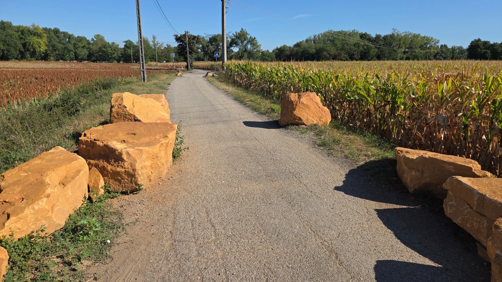 A souligner depuis mes précedents passages: entre le viaduc de Jarnioux et Liergues, la voie du tacot a été aseptisée: fini le cheminement herbeux le long des vignes, la piste est en béton désactivé et asphalte , franchement du gore ou du gravillon aurait suffi .... ça perd du charme; et bonjour la vitesse ....