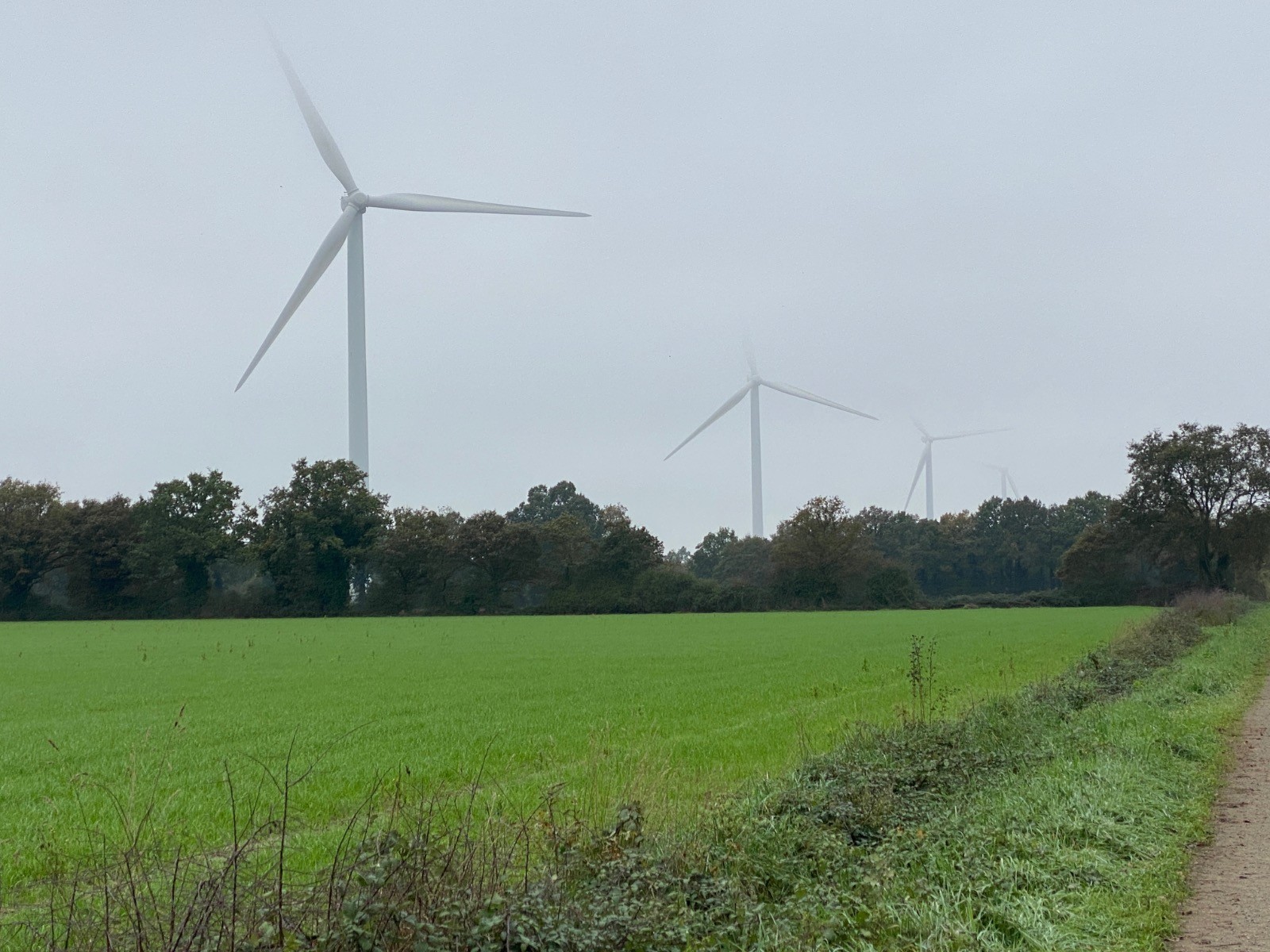 Il est vrai que les éoliennes, enveloppées dans la brume, ne sont pas le spectacle grandiose auquel on s'attend en pleine nature.