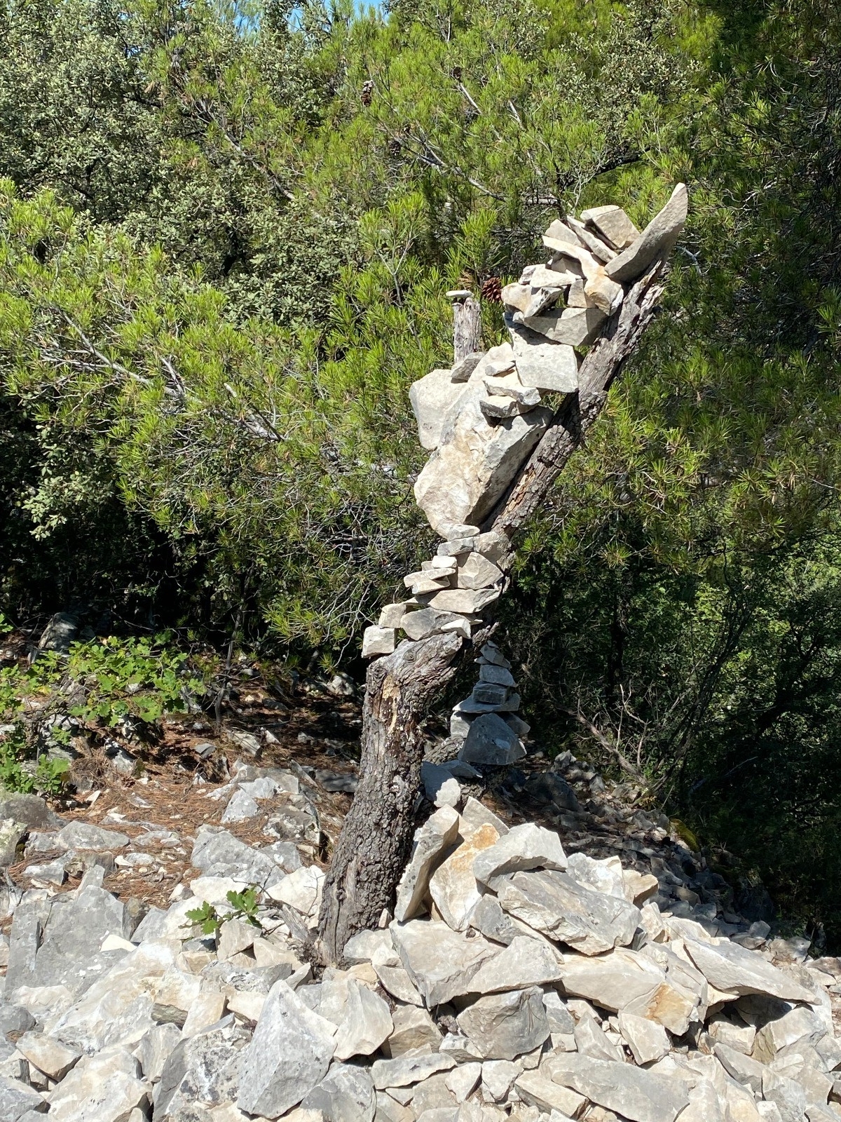 Les randonneurs se sont amusés à construire des cairns ( photo 15 ) avec comme base de départ : un arbre mort ou une branche morte.