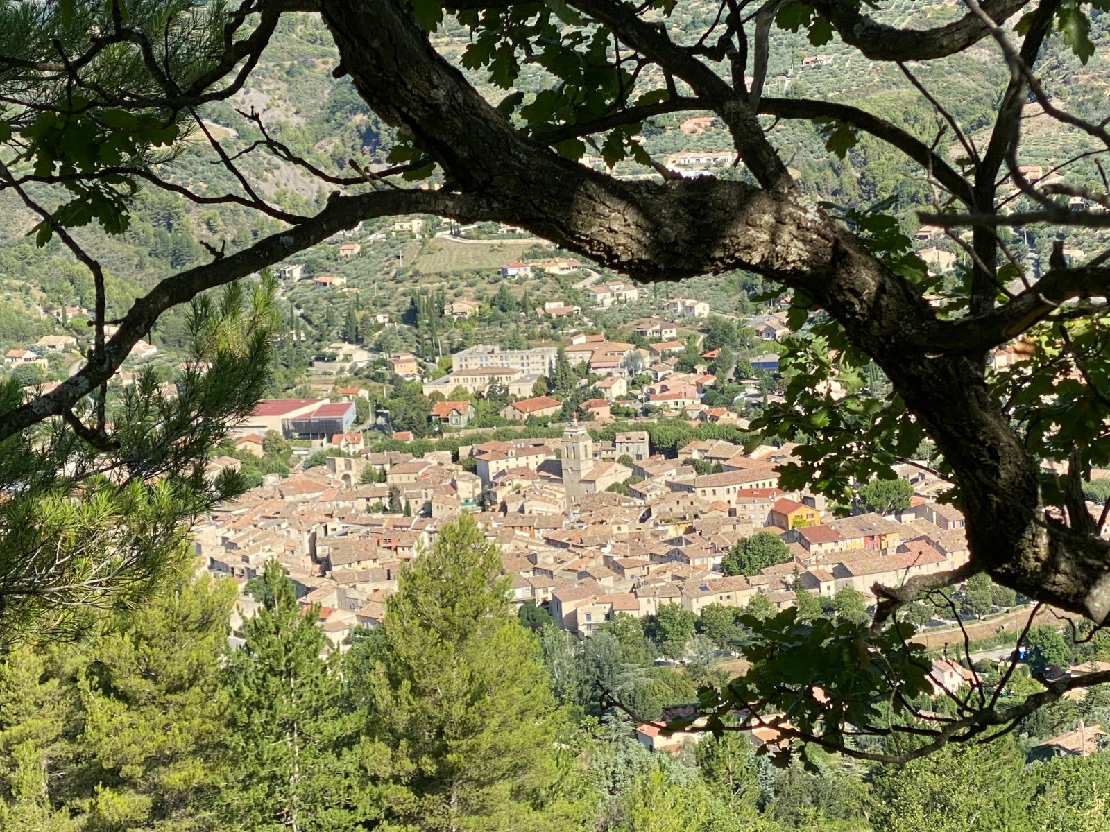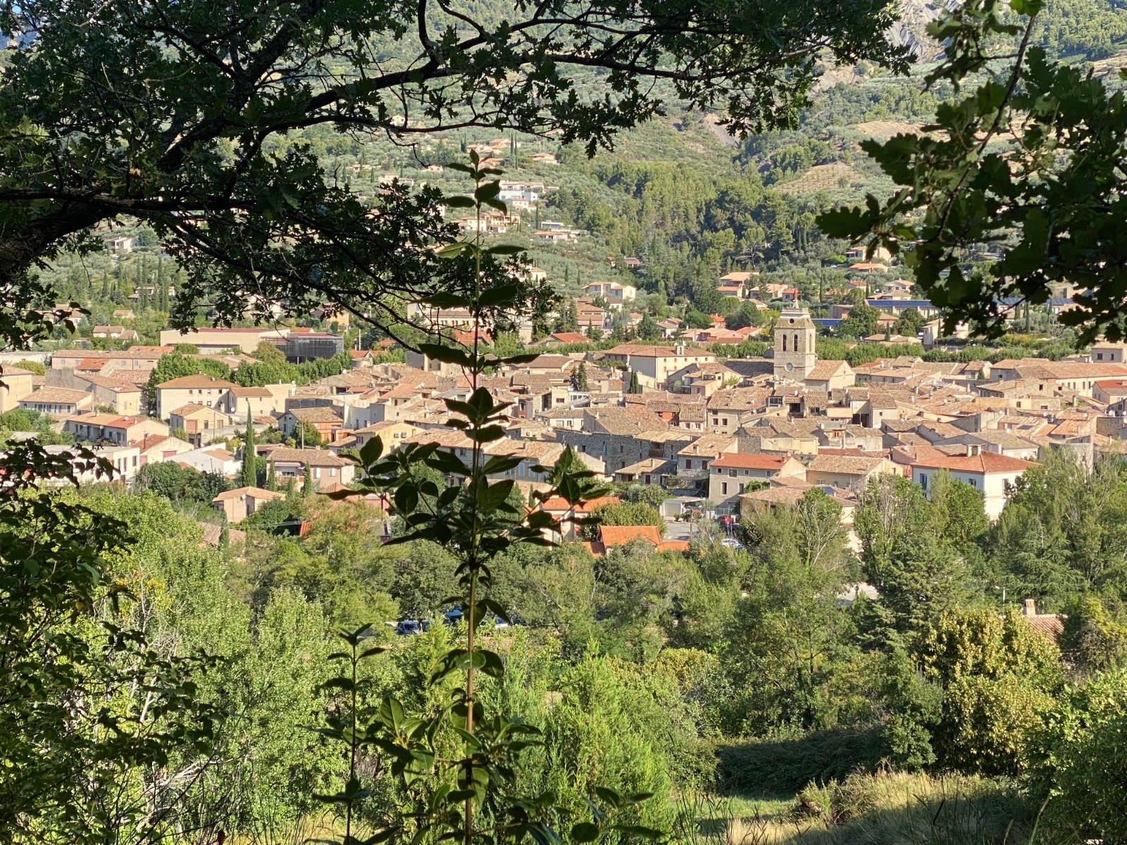 La vue sur Buis les Baronnies est magnifique ( photos 2 & 6 ) , les maisons aux toits rouges et l église Notre-Dame-de-Nazareth apparaissent dans la vallée avec comme décor le vert des oliviers et des abricotiers.