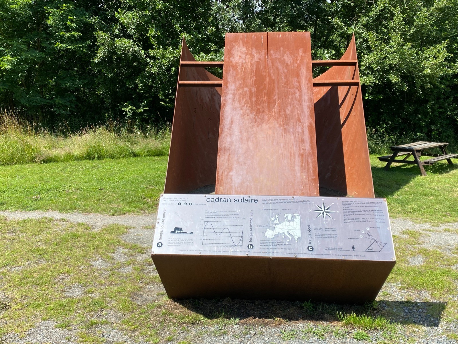 Au pied de l'église, vous découvrez la vallée de la Pivre où un cadran solaire monumental y est installé.
