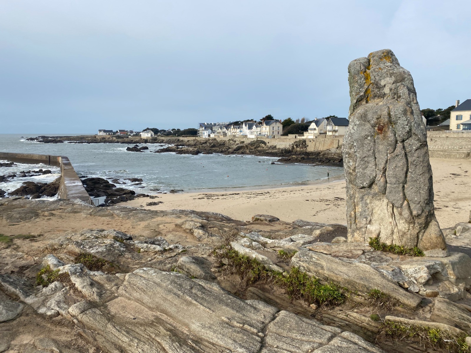 Au bout d'un kilomètre nous voilà sur la côte rocheuse avec les plages de St Michel puis de la grande plage Valentin très prisée par les touristes l'été.