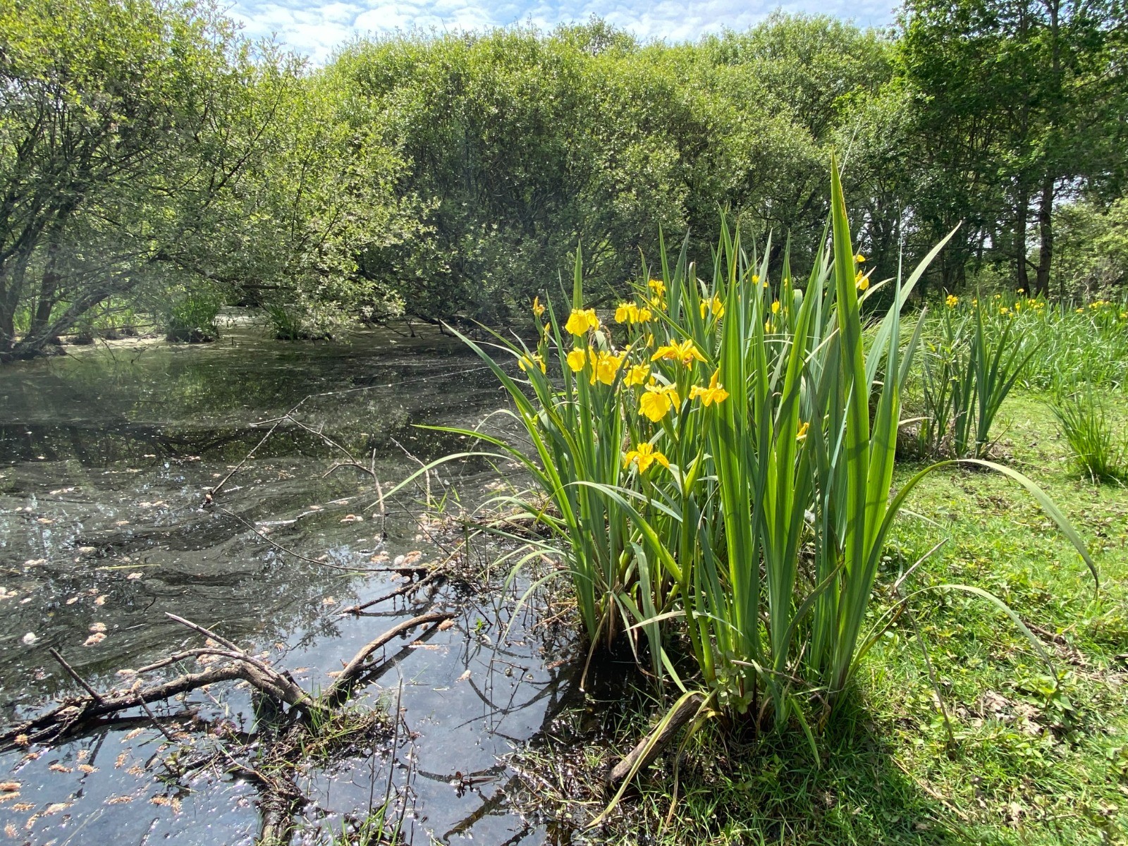 Une superbe vivace aux fleurs jaune a envahi le marais : l'iris des marais ( photos no 6 & 7 )