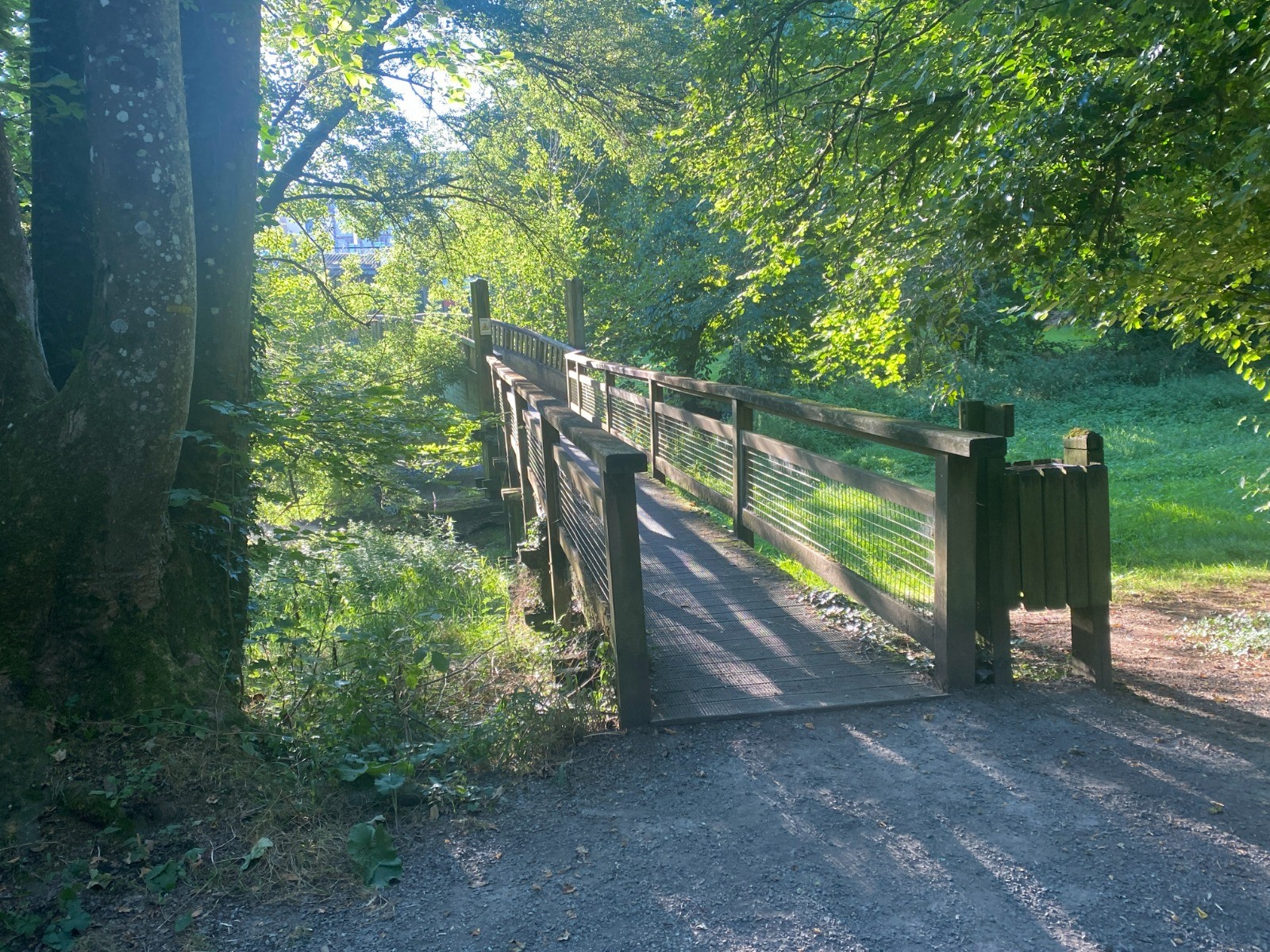 Dès le départ il vous faut emprunter un escalier et ensuite emprunter une gigantesque structure en bois qui passe au-dessus de la Logne. ( photo no 1 )