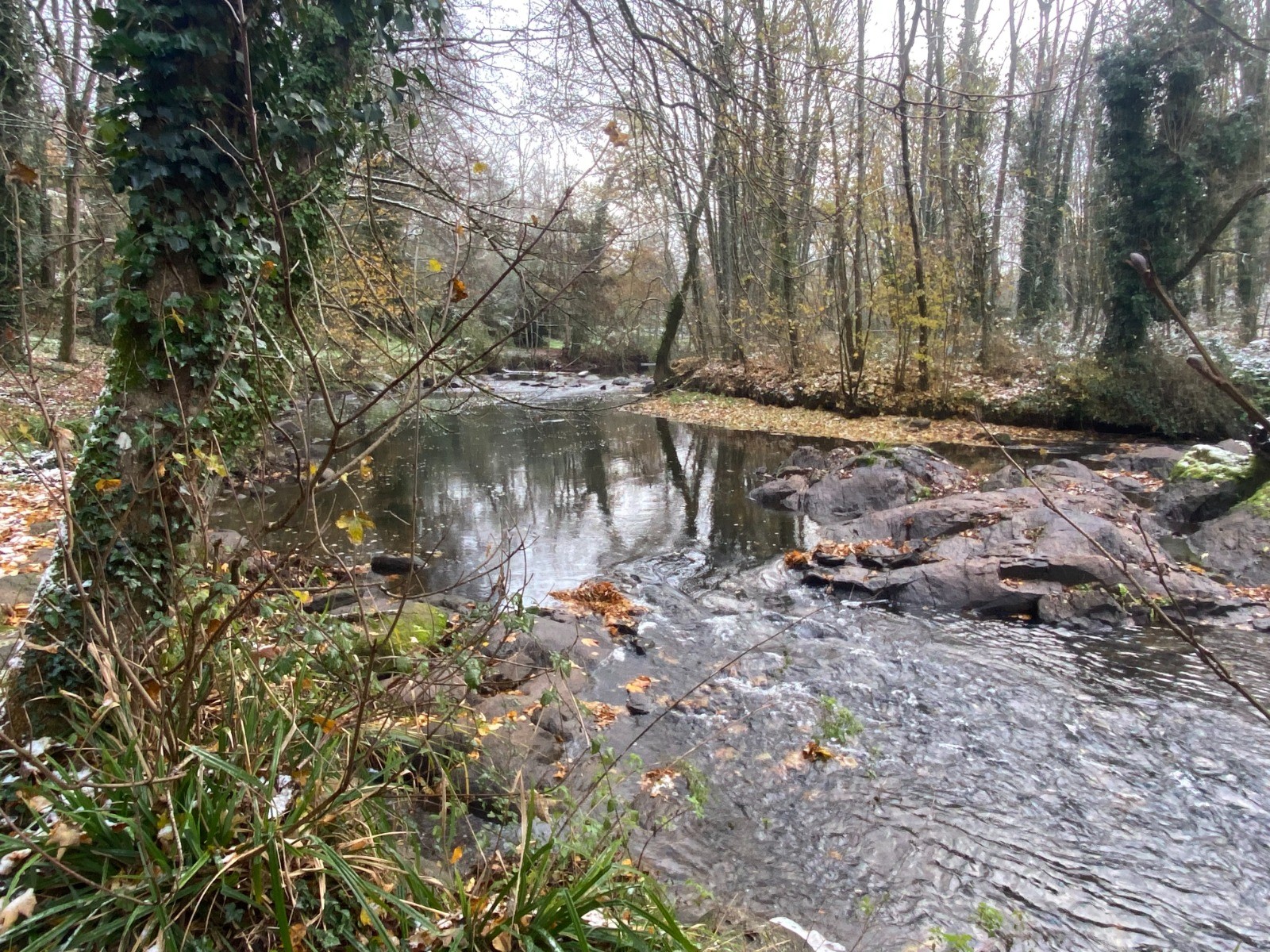 Ce petit tapis de neige et les couleurs automnales embellissent cette randonnée.