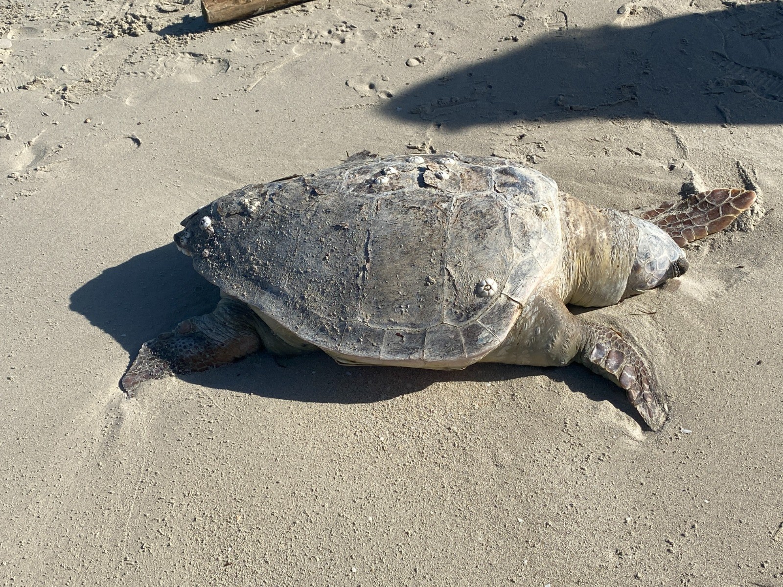 Un moment plus triste vient toutefois assombrir la balade : une tortue ( Wikipédia : tortue caouanne identifiée par mon frangin ) échouée gît sur le sable, rappel brutal de la fragilité de la vie marine ( photo no 13 ).
