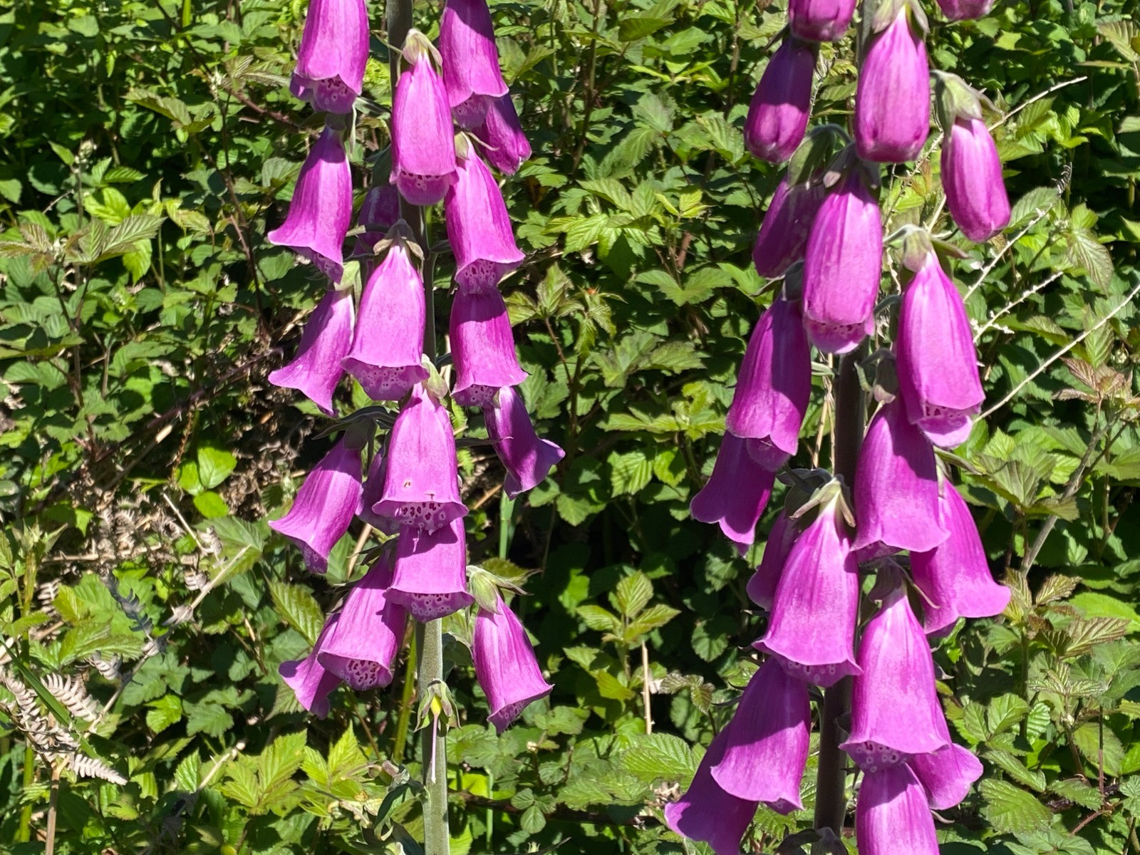 Comme hier mais un peu plus avancées les digitales ( photo no 20 ) avec leurs grands épis dressés couverts de fleurs se mettent facilement en scène.