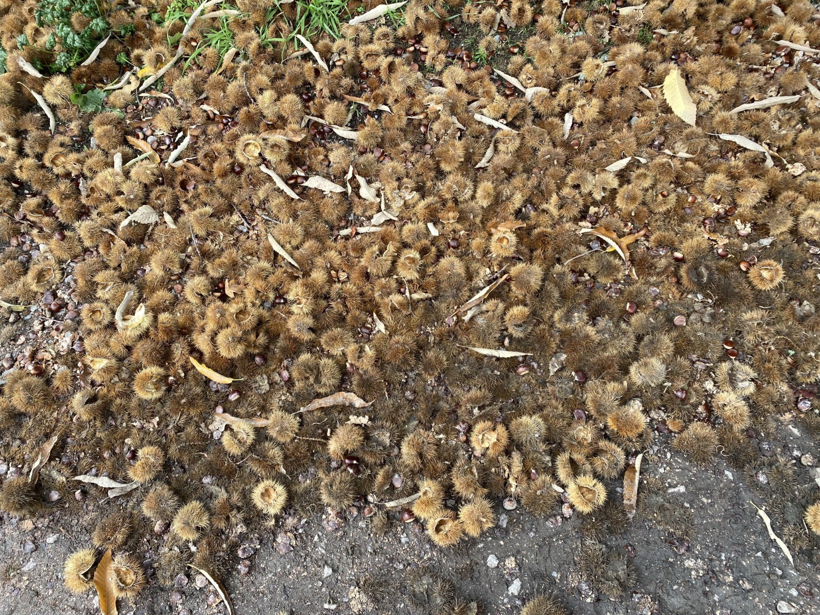 Parfois le sol est jonché de bogues qui ont trouvé des amateurs de châtaignes.