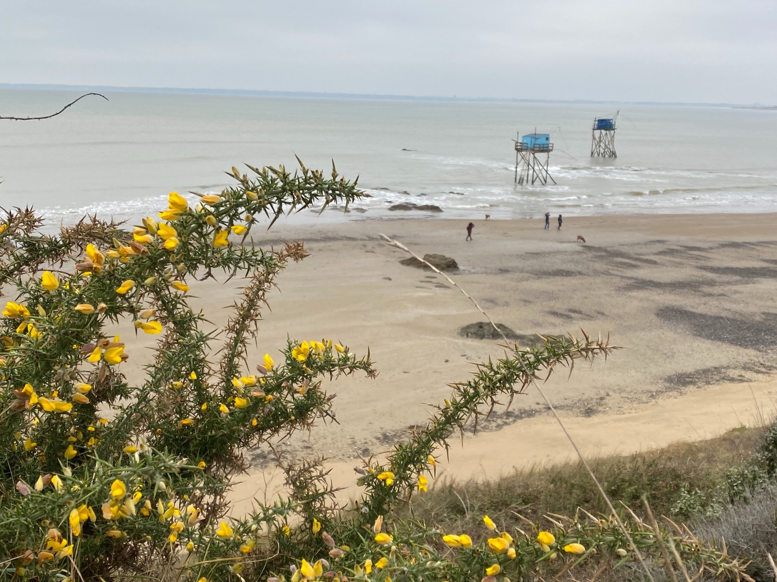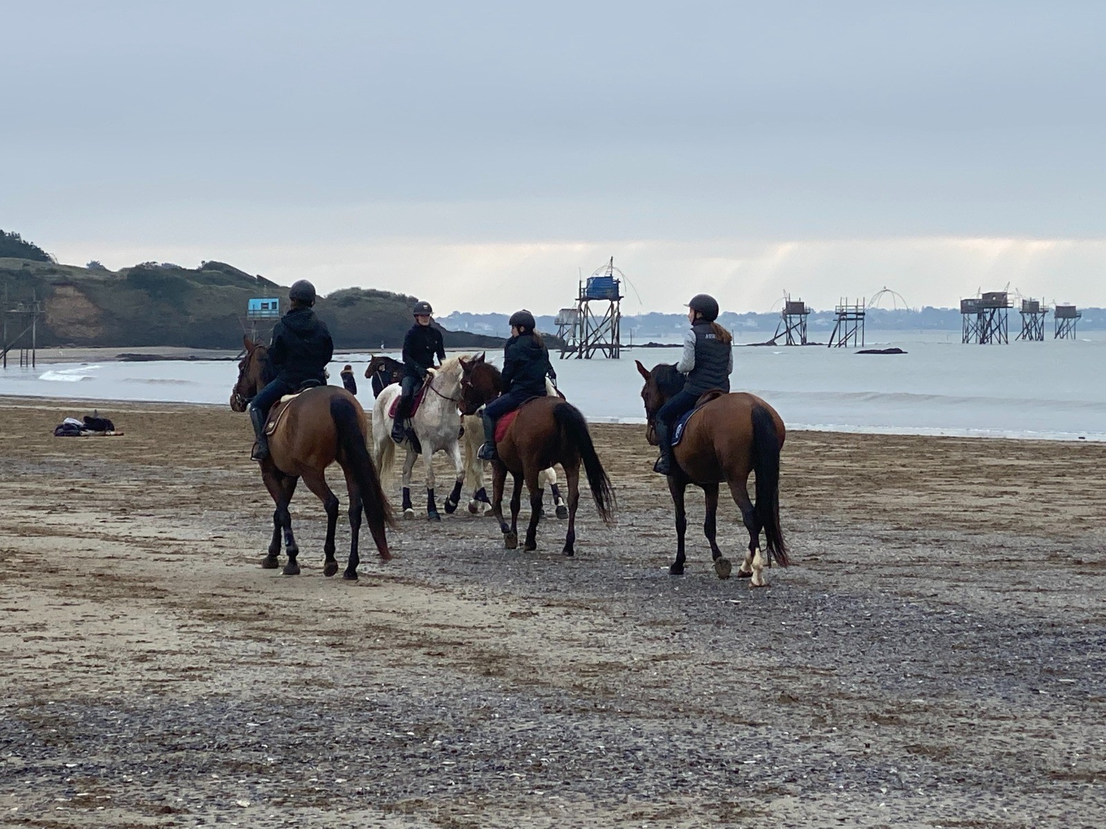 La Plage de la Roussellerie se présente, des cavaliers profitent de la marée basse.