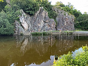 170 mSource et trace de la randonnée : VisoRando Description : "La Gacilly, c'est d'abord un pont qui franchit l'Aff, là où la rivière se faufile entre deux collines boisées. En escaladant celle qui surplombe la ville du côté ouest, on a la possibilité de parcourir une belle boucle dans u »