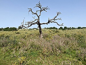 140 mTrace GPX de la randonnée : Cirkwi Description : "L’or des ajoncs et des genêts, le mauve des bruyères égaient le sentier sillonnant dans la lande. Les espaces ouverts laissent place à de vastes panoramas sur la campagne et sa mosaïque de couleurs. Le circuit ne présente pas de dif »