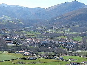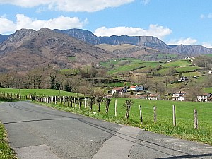 520 mDu dernier village de Basse Navarre, Bidarray, au premier du Labourd, Espelette. A la croix descendre vers la Nive. Continuer tout droit sans traverser les 2 ponts, plus loin passer le nouveau pont à droite (panneau Itxassou Pas de Roland) Après le pont, gauche ( panneau Ostape) puis à 300 mt à »