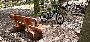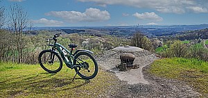 390 mCircuit de 34,5Km à partir du parking de l'étang du Warndt (Warndtweiher) en Sarre. Circuit principalement forestier et champêtre, sans grande difficulté si ce n'est la montée vers le château du diable le "Teufelsburg" (merci à l'assistance électrique...😉) et aussi la descente s »
