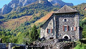 1260 mDerniére étape Française avant l Aragon, de la Via Tolosana ( voie d Arles GR 653), dans le magnifique cadre du fond de la vallée d Aspe. Prendre la route qui quitte le village en direction du Somport et d Urdos. Elle redescend vite pour rejoindre la nationale. Longer la nationale. Au passage »