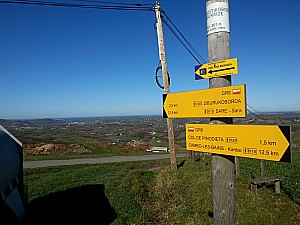 470 mDe Hélette à Espelette, le pays du fameux piment, par les collines de la province du Labourd au Pays Basque Prendre la ruelle à gauche du fronton, vers l’église , suivre à droite en descente; laisser le petit pont à gauche et continuer le chemin de Garalda, puis aprés le moulin prendre »