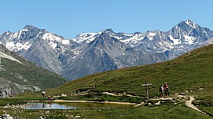 11720 mUne randonnée sportive d'une quinzaine de jours au départ du Bourg d'Oisans. Le GR®54 invite le marcheur à découvrir le Parc national des Écrins et à contempler les sommets des Alpes du Sud. Véritable challenge sportif de 190 kilomètres, avec 14 cols et plus de 12 000 mètres de dénivelé, »