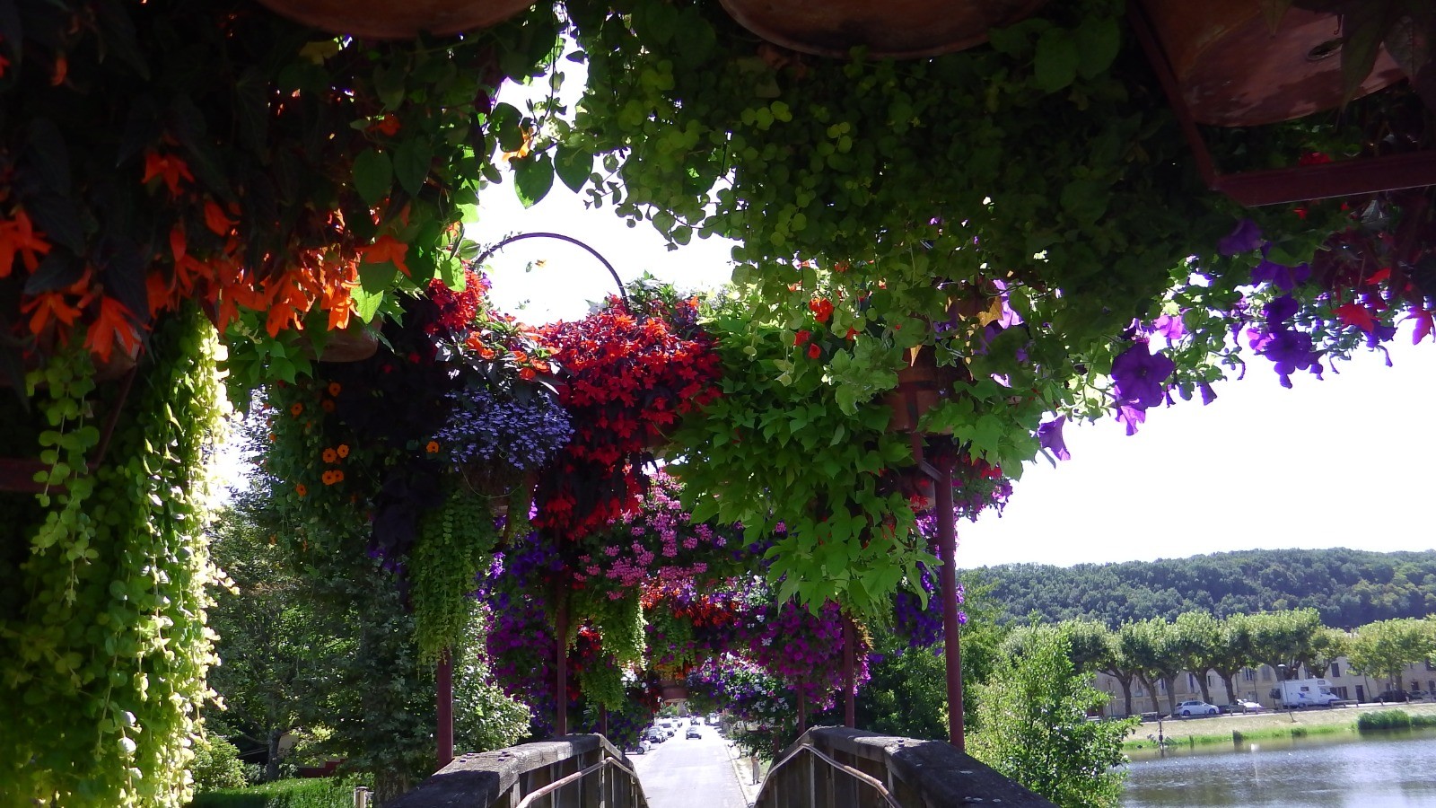 Le chemin de halage du canal nous ramène tranquillement au port avec sa belle passerelle bien fleurie qui débouche sur le parking.