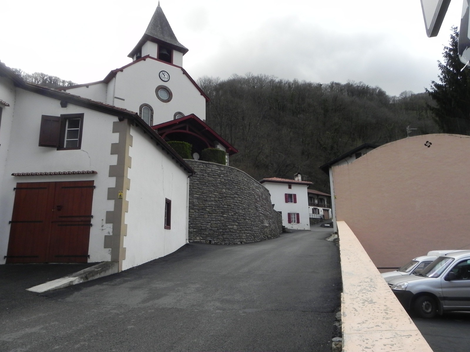La petite route descend vers le centre commercial ( entrée en territoire Espagnol) que l on traverse; continuer en longeant toujours la Nive coté Espagnol jusqu au bourg d Arneguy.