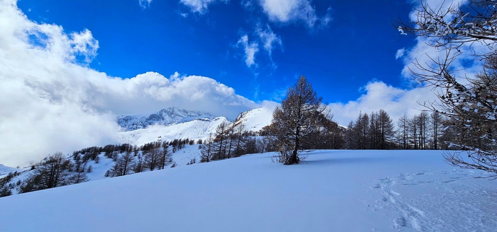 Rando effectuée en risque avalanche 2 avec quelques parties hors sentier ne présentant pas de réelles difficultés en terme d'orientation. Ample panorama depuis chacun des 2 sommets concernés qui s'avèrent néanmoins complémentaires, en considérant que le Plan Tendasque offre une vue plus dégagée depuis la vaste croupe qui le caractérise. Parcours entrepris par temps incertain avec subites et superbes variations lumineuses propres aux circuits d'altitude de ce type.