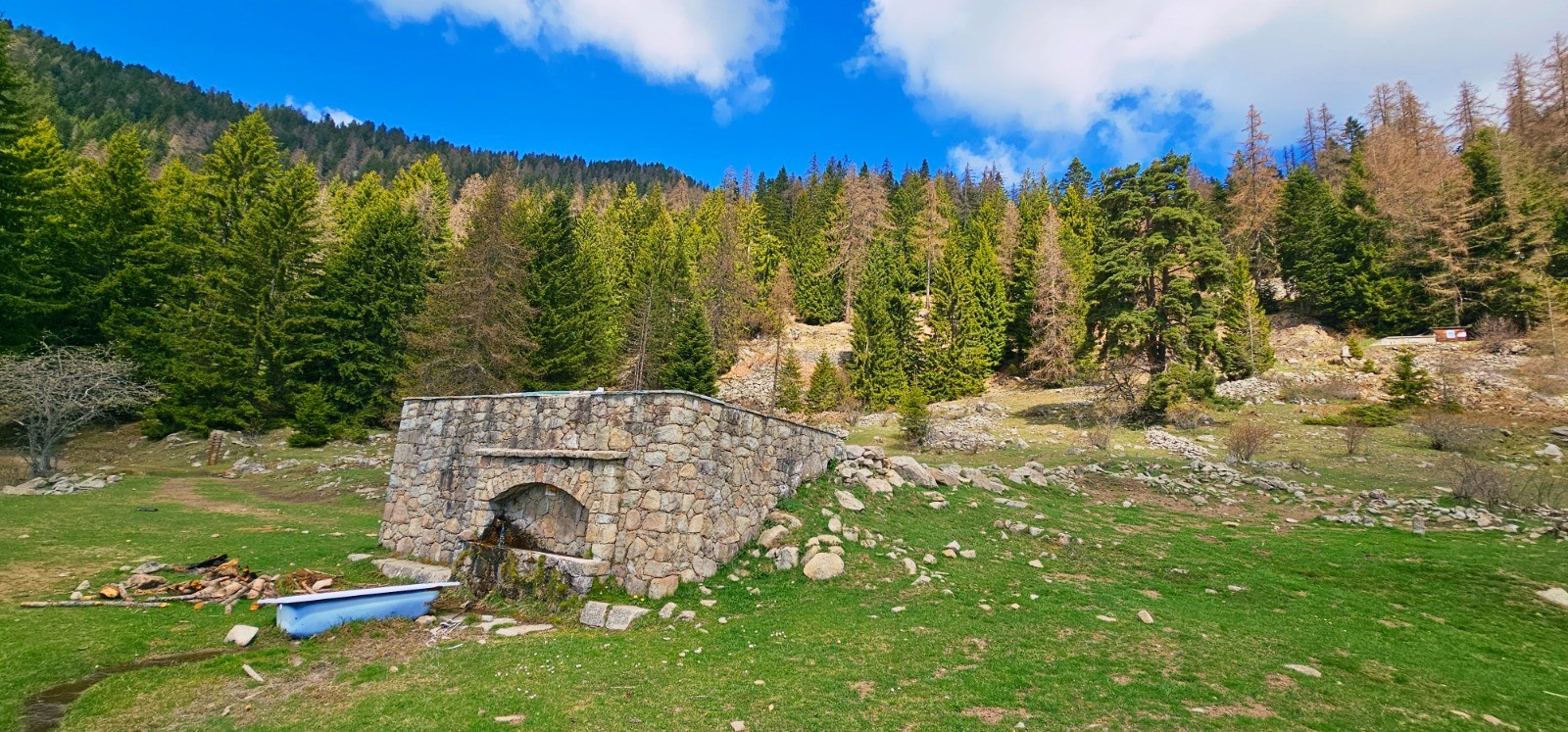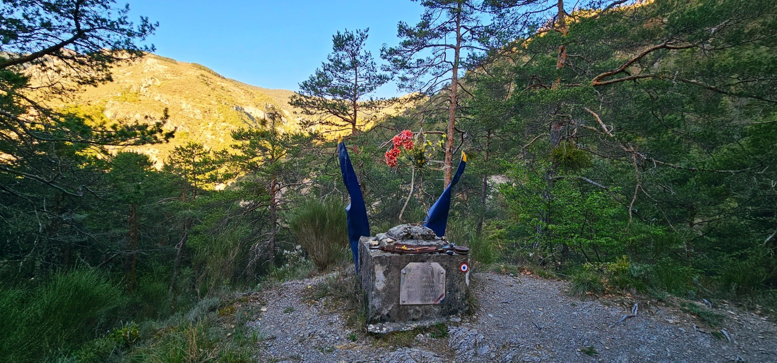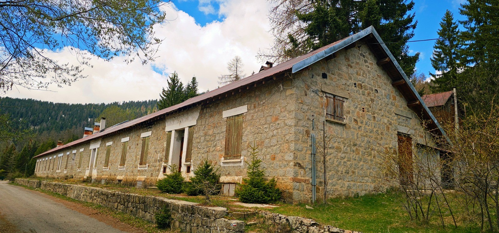 Phase en ascension constante par la rive gauche du Riou Figaret qui va servir de fil conducteur avec élévation progressive qui va s'accentuer après le lieu-dit des Granges de Lause en suivant côteaux traversant plusieurs vallons et ravines. Après avoir rejoint la vacherie des Granges, jonction au km 10,3 avec la route carrossable reliant les Granges de la Brasque depuis La Tour-sur-Tinée. Il s'agit du point haut du circuit à 1650 m d'altitude avec la belle fontaine Zingler (1896 - 1903) captant la source de la Brasque. Changement d'environnement avec superbe forêt de confières qui nous transpose dans un environnement de moyenne montagne. Suivre route goudronnée plein est sur 1 km pour aboutir à l'ancien casernement du camp du Tournairet. Emouvant site ayant accueilli de nombreuses garnisons (Chasseurs Alpins, Génie, etc...) dès 1885 jusqu'à la 2nde guerre mondiale et qui a été transformé à l'issue en colonie de vacances jusqu'en 1993. Site historique avec poste défensif, place d'armes et nombreuses stèles des régiments affectés sur site. Peut-être aurez vous également l'heureuse surprise d'y découvrir l'emblème d'un régiment où vous aurez servi ! Visite nostalgique parachevée avec la découverte de la chapelle Notre-Dame-des-Victoires destinée aux troupes qui stationnaient sur place à partir de 1931. L'édifice est malheureusement en piteux état et menace de s'effondrer. Il est désormais muré et clôturé depuis 3 ans.