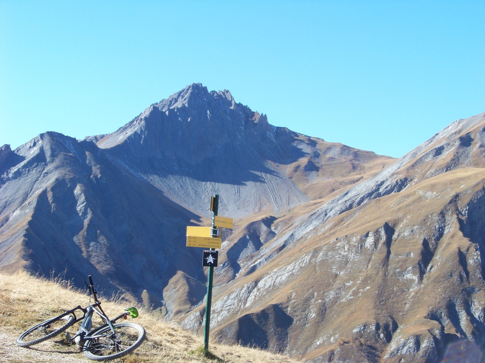 Monter dans les alpages en pentes douce à la pointe de la Fenêtre 40m plus haut. On laisse le VTT 10m sous le sommet dans un pierrier raide.