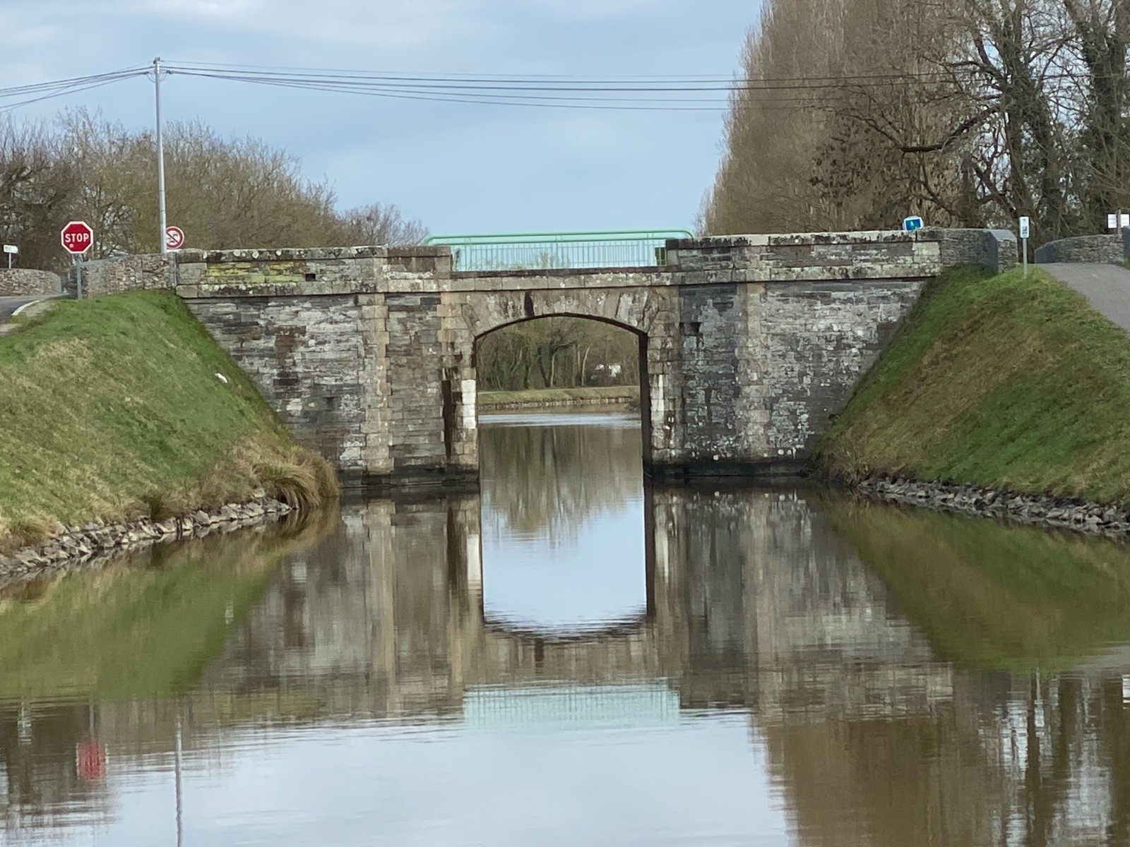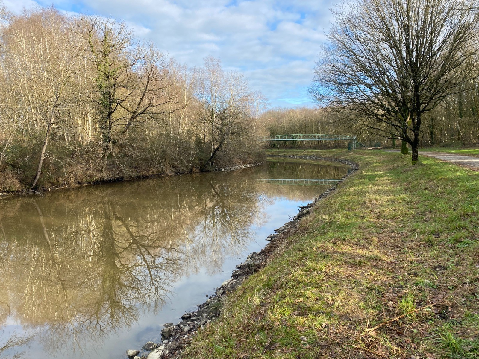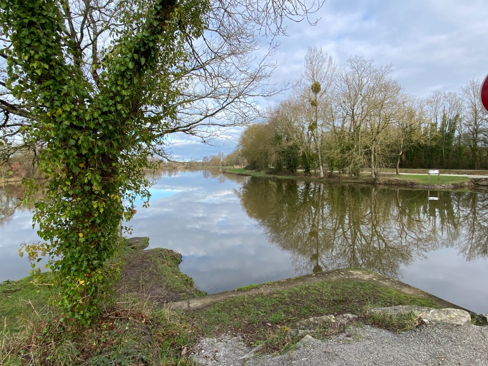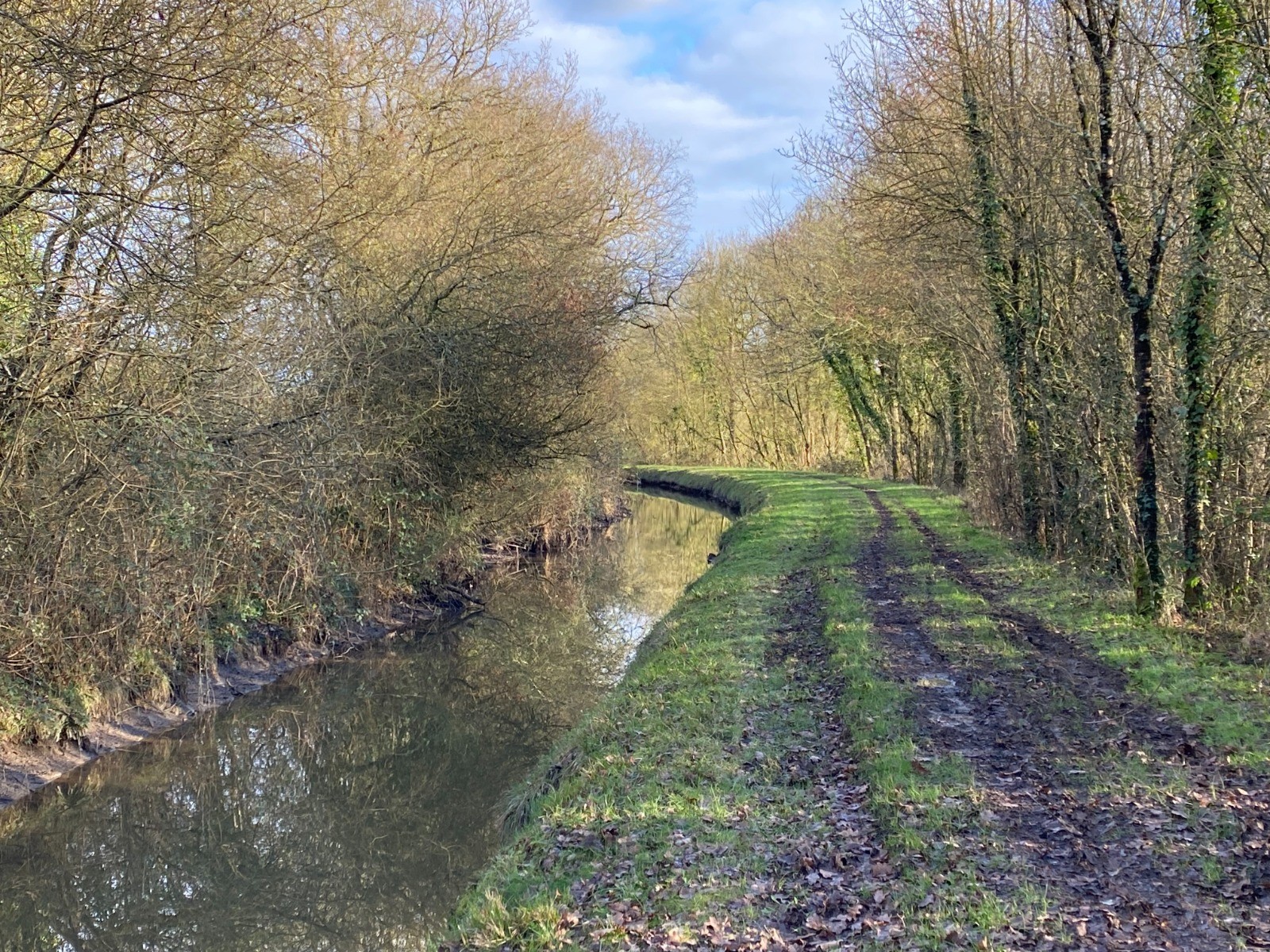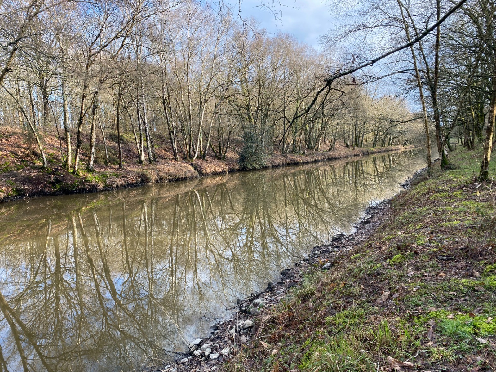 Rendu au bout de l’étang je vais emprunter le chemin de halage du canal de Nantes à Brest.